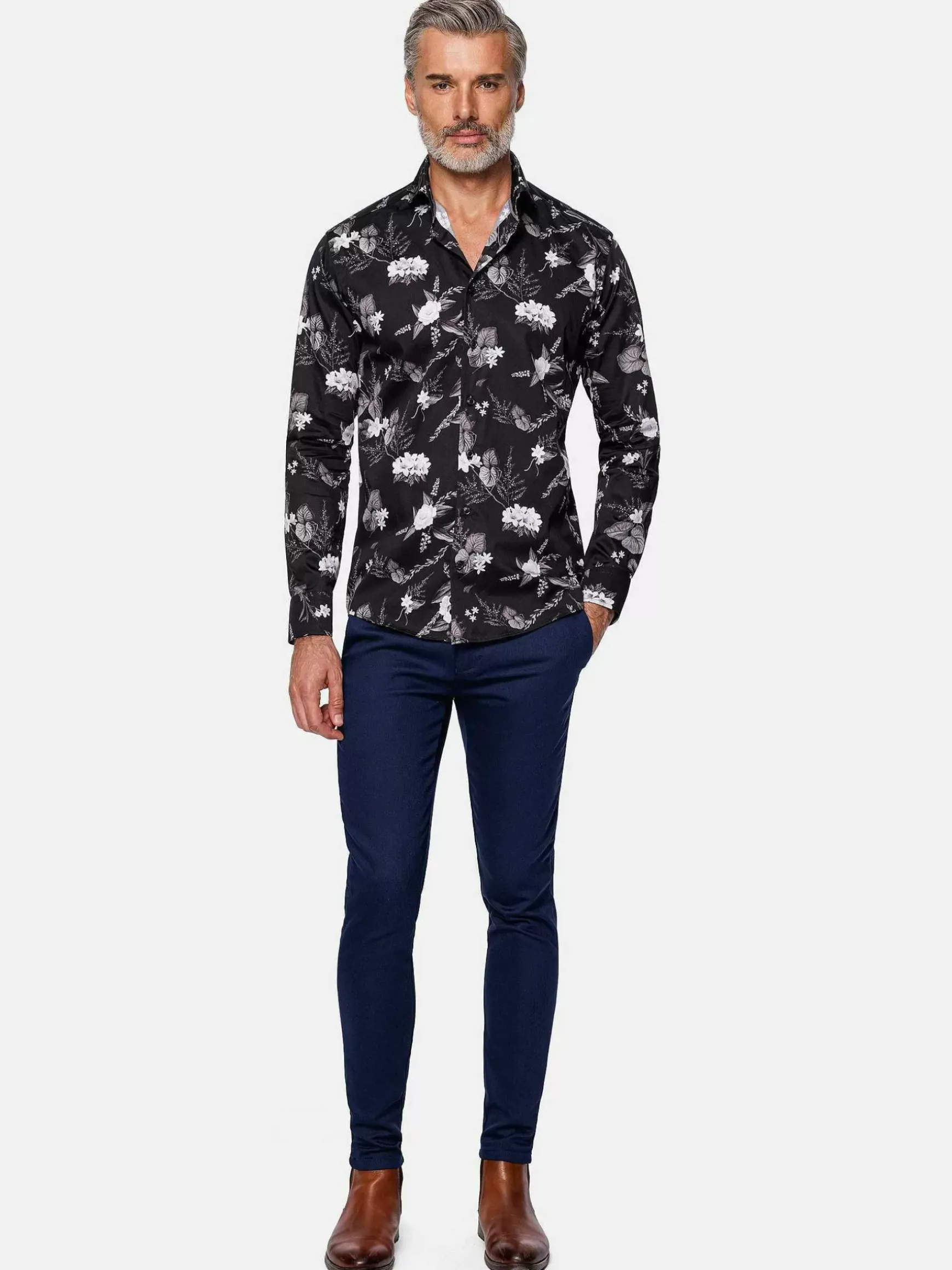 Duik In De Prachtige Wereld Van Mode Met Ons Floral Black Long Sleeve Shirt. Dompel Jezelf Onder In De Ingewikkelde Patronen En Luxe Stoffen Die Elegantie Herdefiniëren. Dit Overhemd Is Gemaakt Voor Mensen Die Van Verfijning Houden En Is Meer Dan Kleding; Het Is Een Statement. Verhoog Je Garderobe Naar Nieuwe Stijlhoogten.