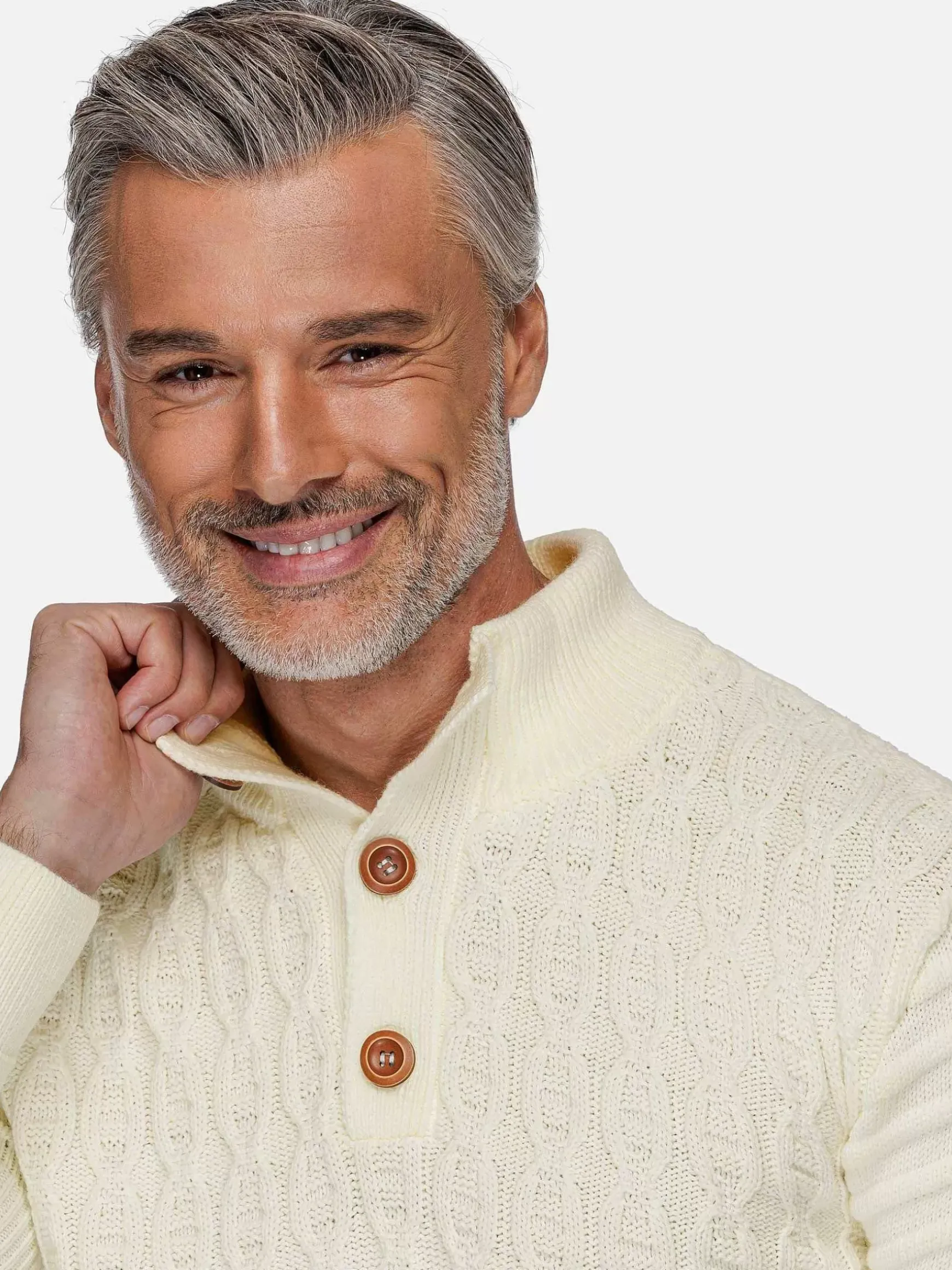 Een Het Hele Jaar Door Ademende Trui. Het Elitepatroon In De Stof Geeft Deze Trui Een Unieke Uitstraling. De Hoog Uitgesneden Kraag Geeft Uw Hals Voldoende Bedekking, En De Geribde Boorden Houden De Winterwind Buiten. Dit Veelzijdige Stuk Is Elegant Genoeg Om Comfortabel Onder Een Topjas Te Zitten, Maar Casual Genoeg Om Perfect Te Combineren Met Denim Voor Gezellig Weer.