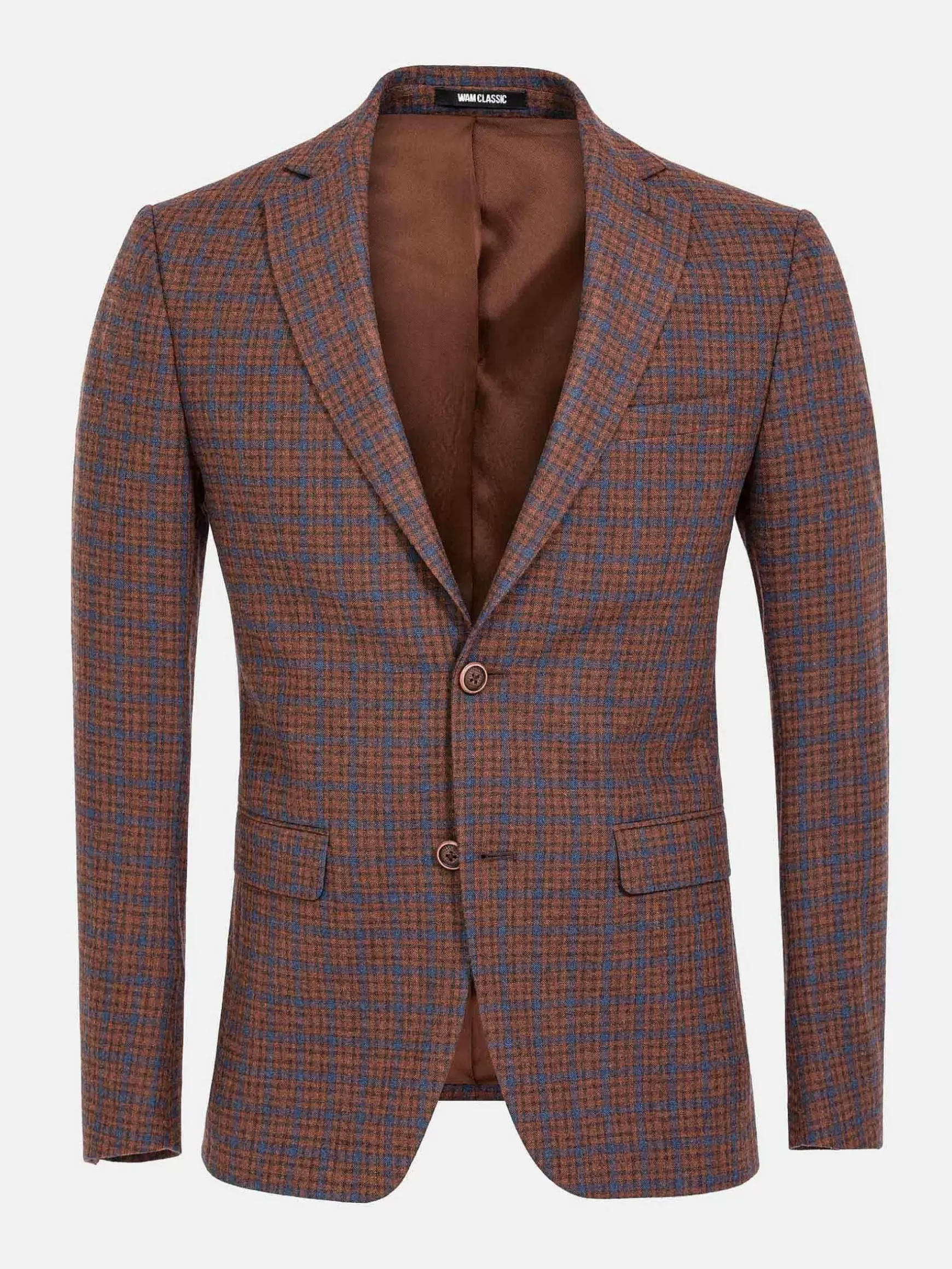 De Blauwe Lijn Geeft Dit Bruine Colbert Een Mooi Ruitpatroon. Het Colbert Heeft Een Knoopsluiting En Twee Voorzakken. Binnenin Bevinden Zich Nog Drie Zakken. Aan Beide Mouwen Zitten Vijf Bruine Knopen.