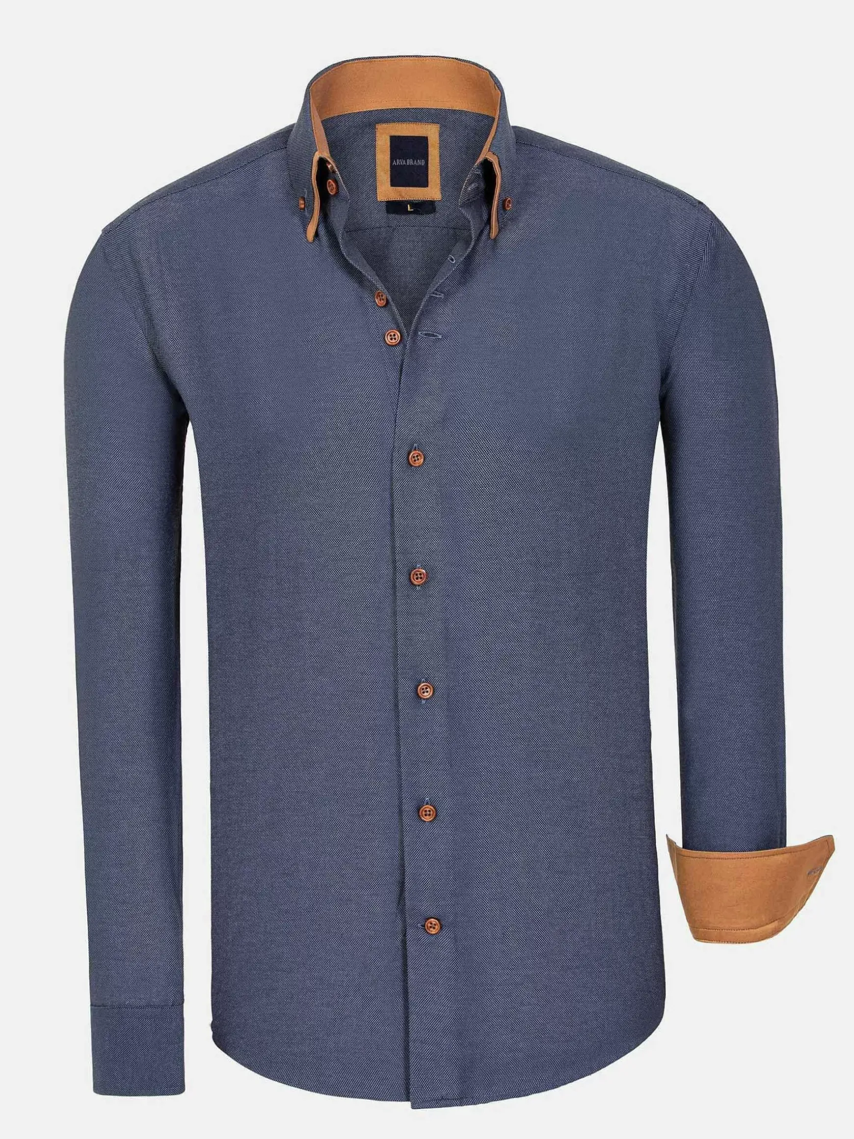 Flers Double Collar Dark Indigo Overhemd Lange Mouw