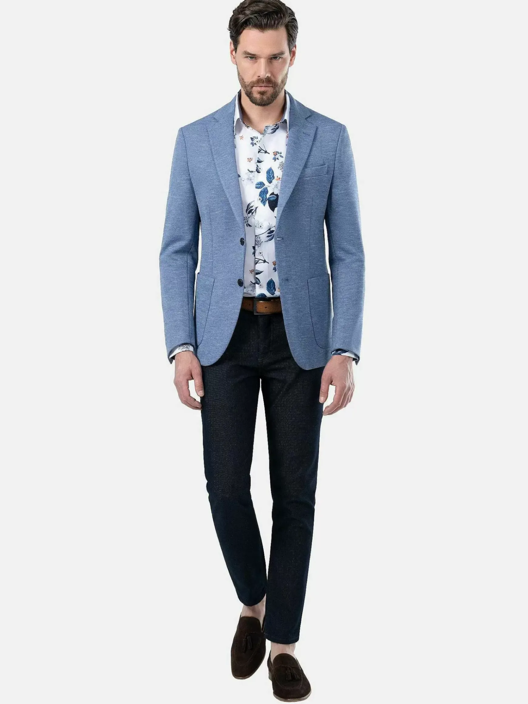 Een Nette Jeans In Donkerblauw. De Jeans Kan Sportief Gedragen Worden Met Een Shirt En Sneakers Of Meer Formeel Met Bijvoorbeeld Een Wit Overhemd. De Broekspijpen Lopen Smal Af. Boven De Rechter Achterzak Is Een Merkembleem Bevestigd.
