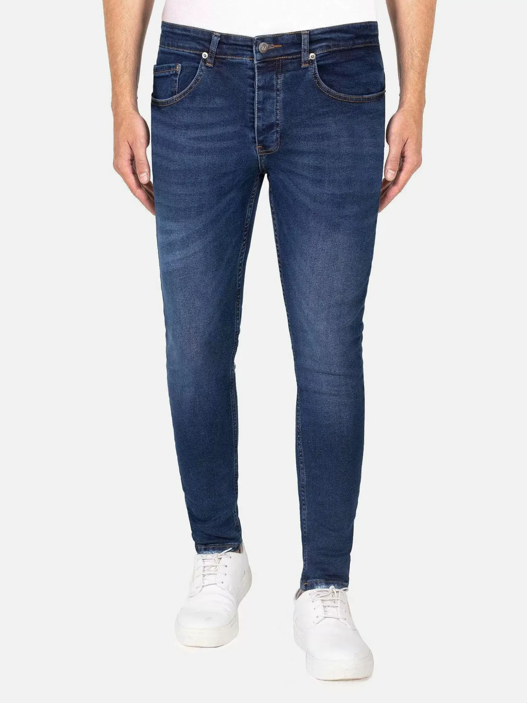 Donkerblauwe Jeans Met Stonewash. Perfecte Pasvorm Door De Stretch. De Broek Heeft Twee Achterzakken, Twee Voorzakken Ontworpen Voor De Hele Dag Comfort En Stijl, Onze Essentiële Stretchjeans Hebben Een Authentieke Look En Feel.