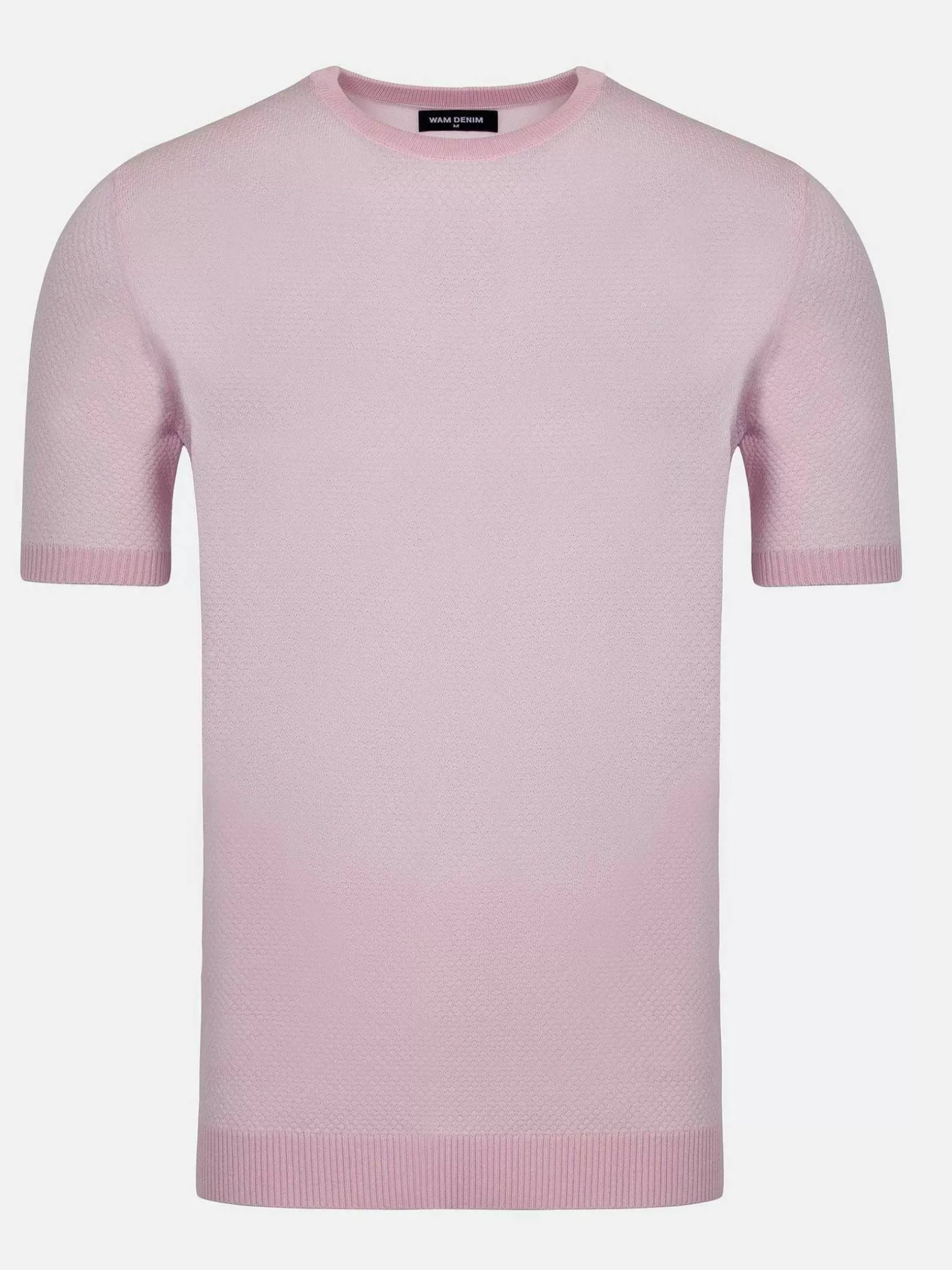 Lucas Pique Knit Pink T-Shirt, Een Stijlvol T-Shirt Voor Dagelijks Comfort. Gemaakt Met Een Geribde Ronde Hals En Korte Geribde Manchetten, Biedt Het Een Verfijnde Maar Ontspannen Look. Het Is Gemaakt Van Ademende Piqué-Gebreide Stof Die Gemakkelijk Te Onderhouden En Absorberend Is, Waardoor Het De Hele Dag Comfortabel Blijft. Het Lucas T-Shirt Is Uitgerekt Voor Extra Bewegingsvrijheid En Is Een Veelzijdige Keuze Voor Elke Gelegenheid.