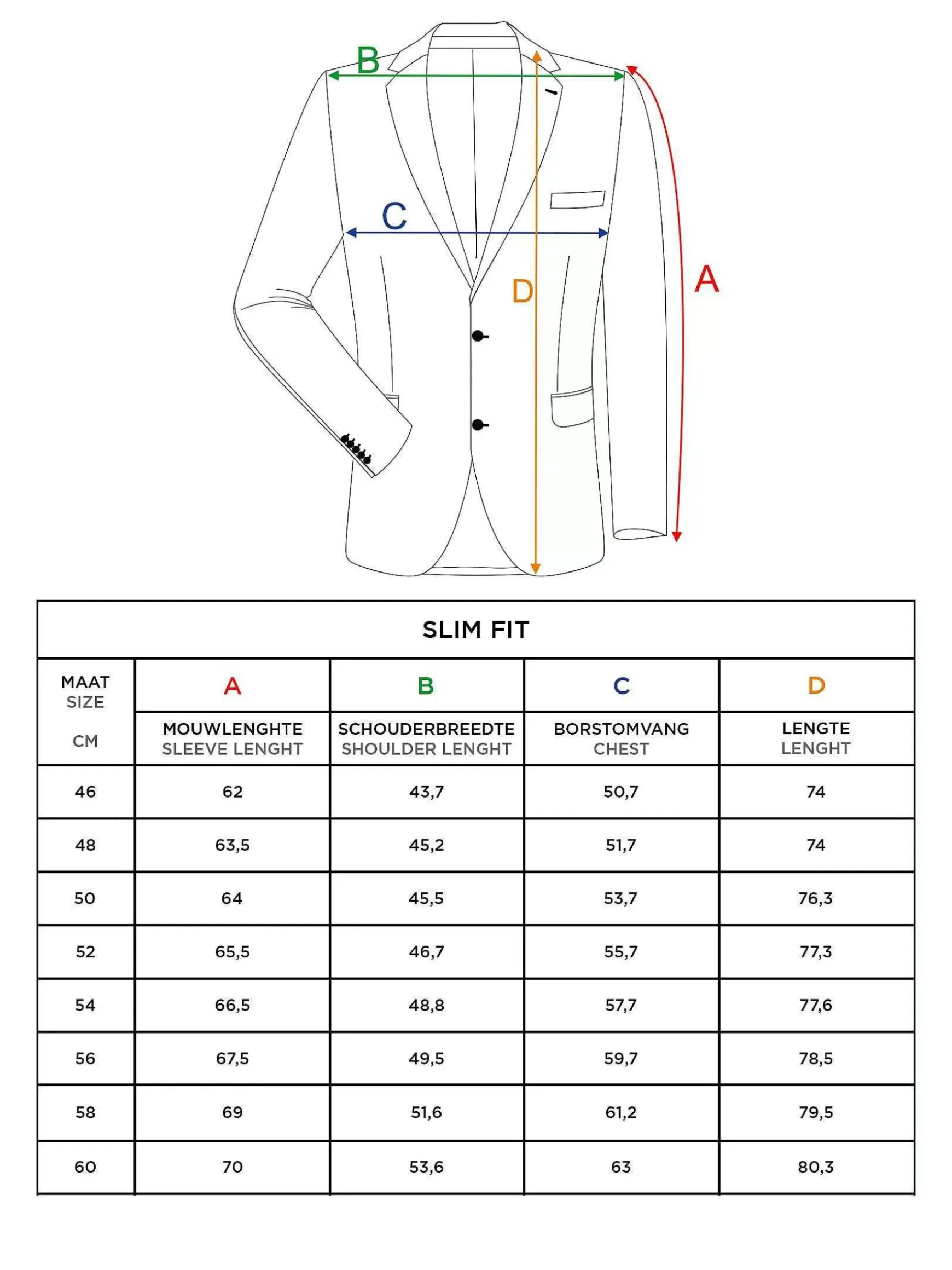 | Maat | 44, 46, 48, 50, 52, 54, 56, 58 |