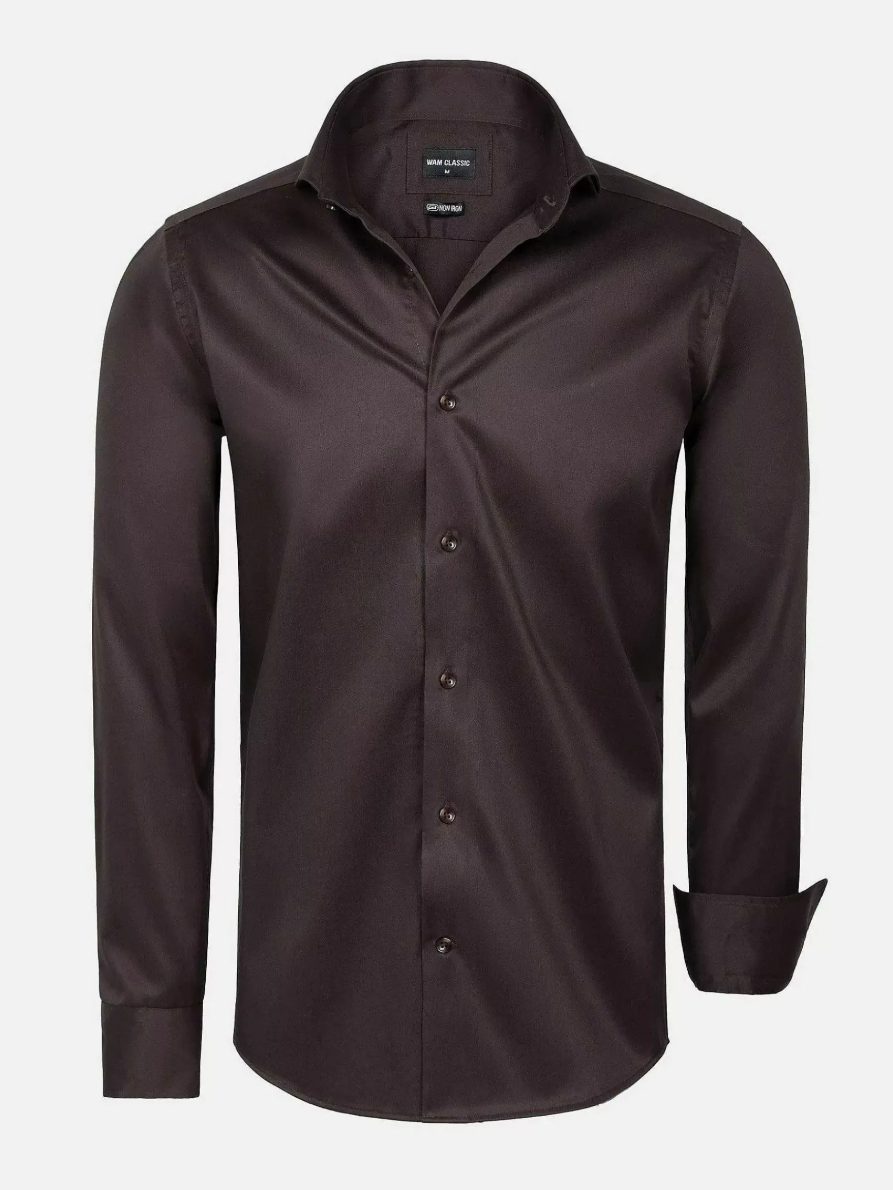 Bruin Overhemd Met Een Chique Uitstraling En Mooie Glans. Past Mooi Met Een Pantalon En Eventueel Een Colbert. Dit Is Een Non-Iron Model. Na Het Strijken Blijft Dit Overhemd Vrijwel Kreukelvrij En Perfect In Vorm.