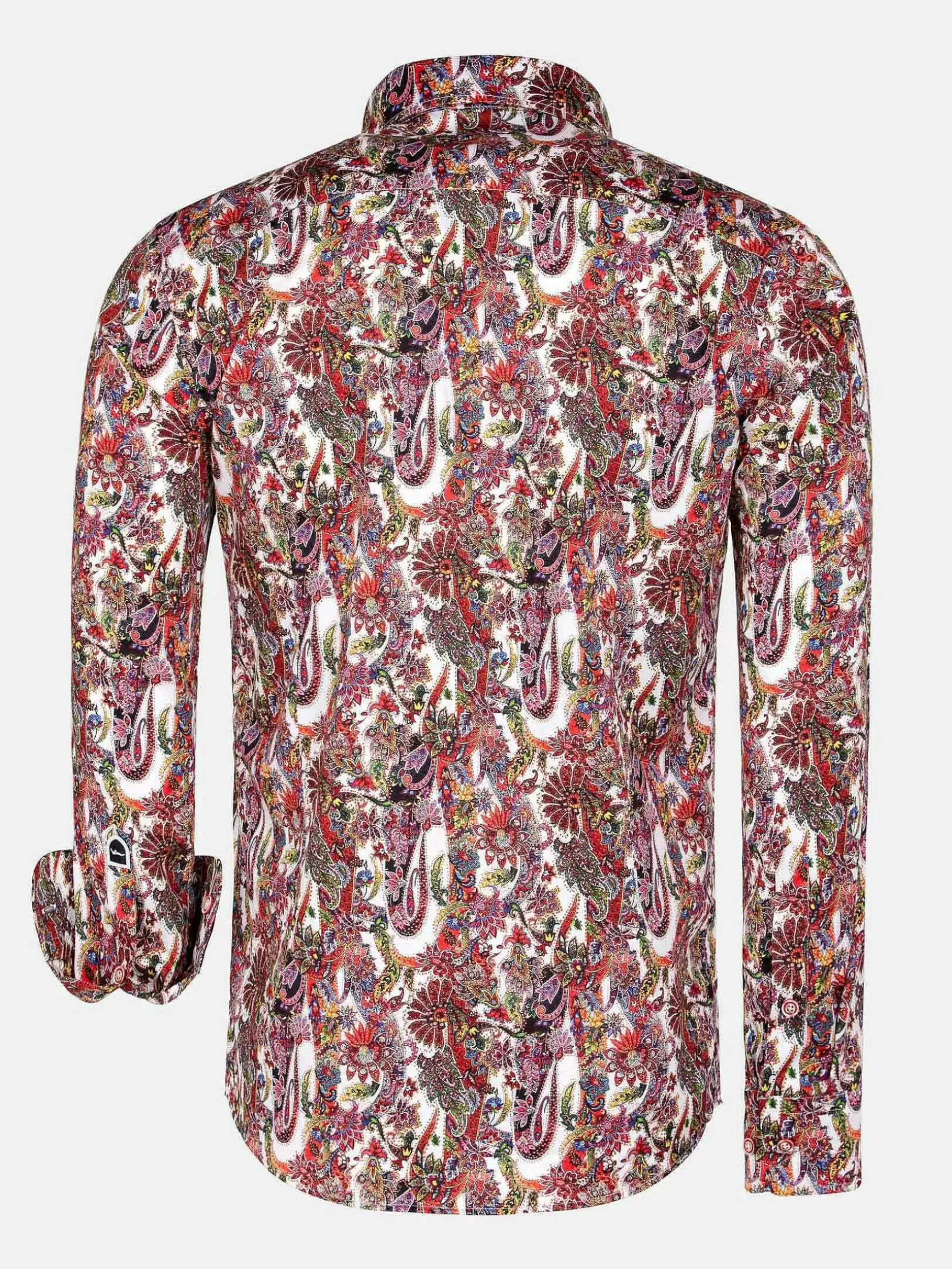 Dit Artistieke Overhemd Heeft Een Prachtig Kleurenpalet. Door De Combinatie Rood, Roze, Paars En Wit Is Dit Een Bijzonder Ontwerp. Dit Overhemd Met Deze Kleuren En Met Dit Motief Laat Zich Goed Combineren Met Een Effen Pantalon Of Jeans.