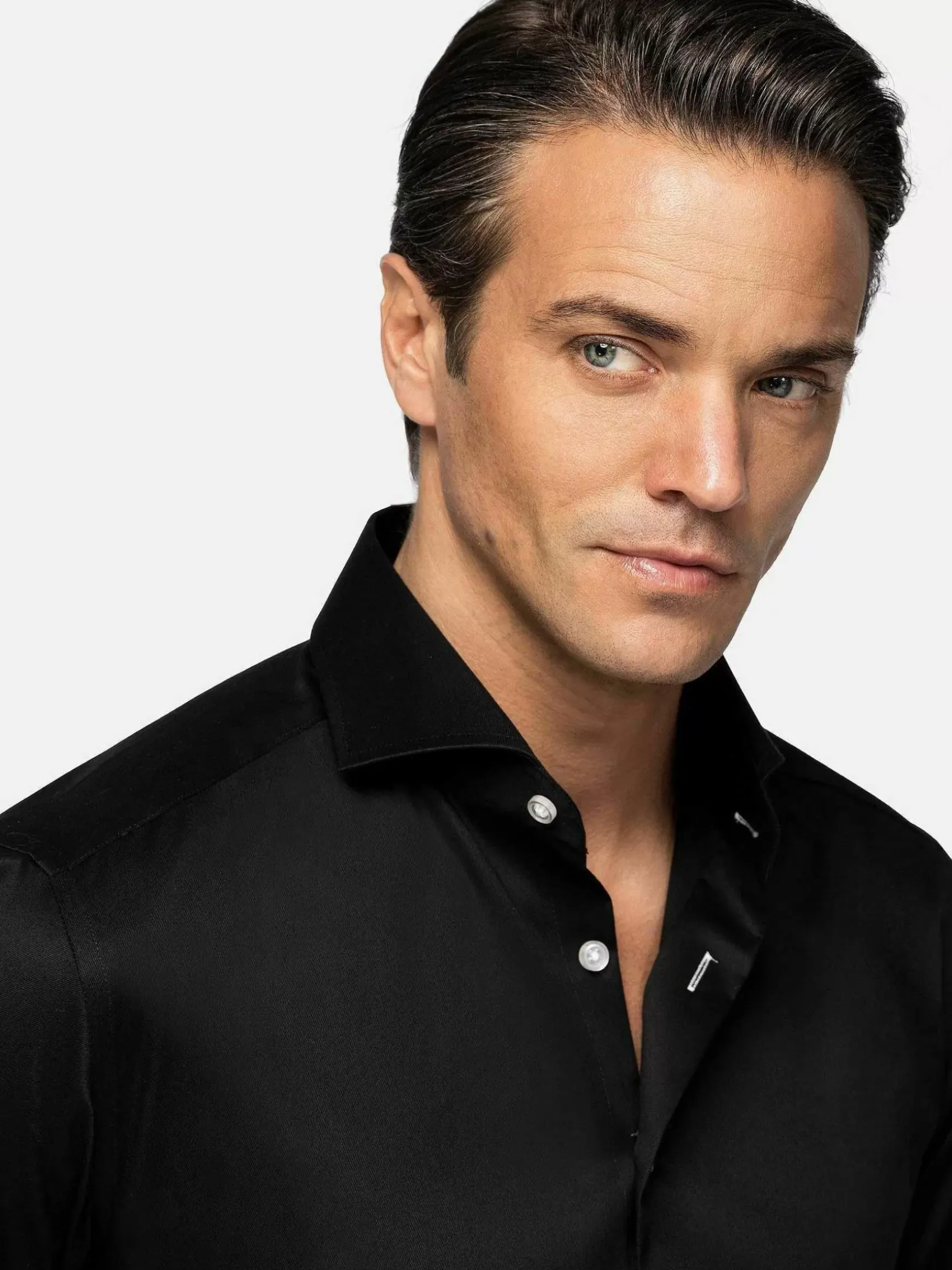 Zwart Overhemd Met Een Cutaway Kraag. De Glans Geeft Het Overhemd Een Mooie Uitstraling. Vervaardigd Van Katoen. Dit Licht Getailleerde Model Heeft Een Perfecte Pasvorm. Perfect Voor Kantoor Of Vrije Tijd. Dit Overhemd Is Ook Verkrijgbaar In Het Wit.