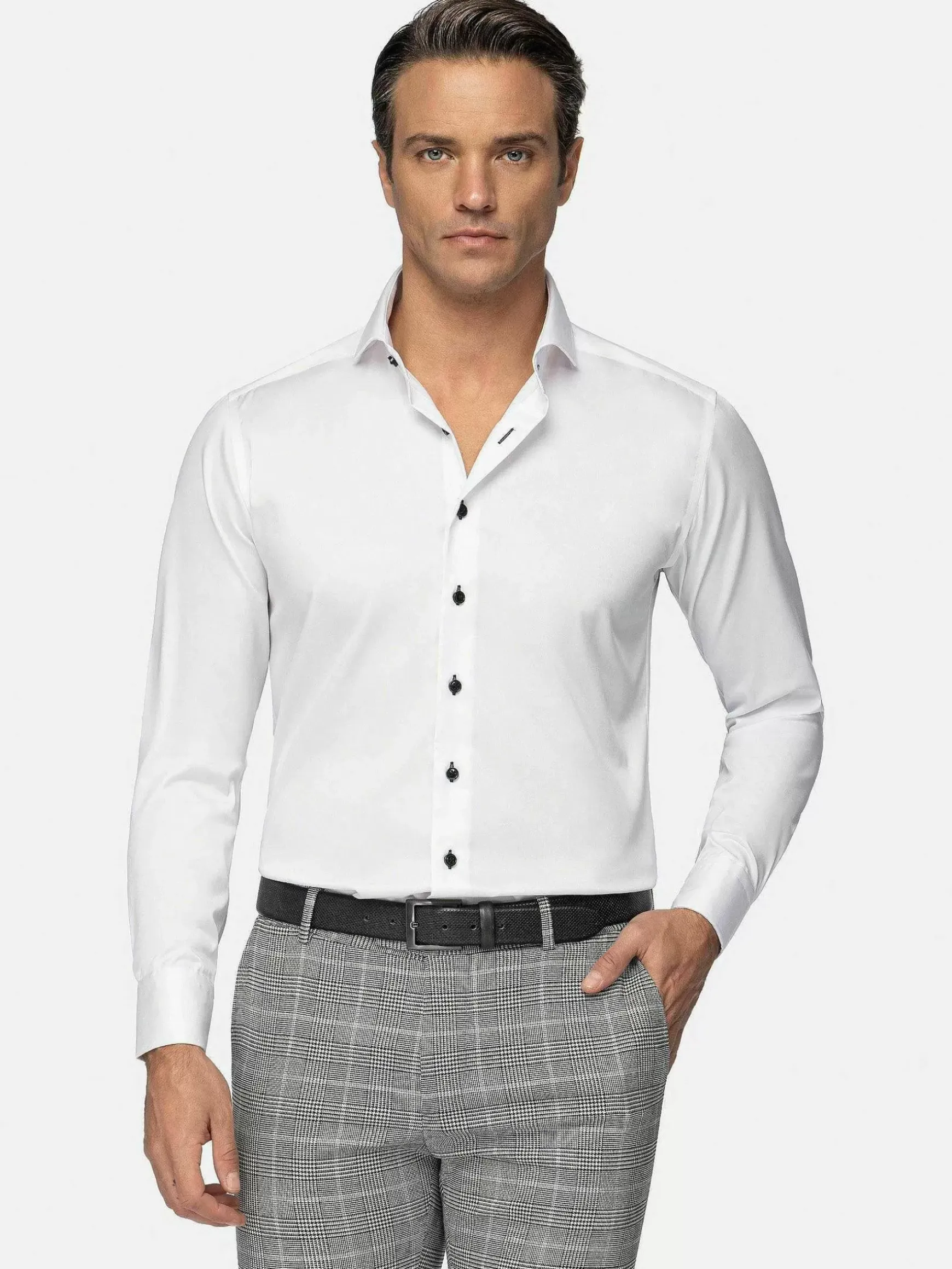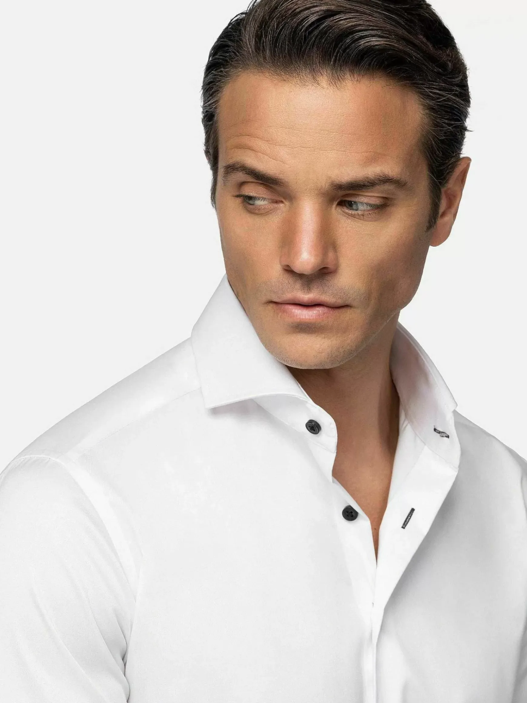 Klassiek Wit Overhemd Met Een Cutaway Kraag. De Glans Geeft Het Overhemd Een Mooie Uitstraling. Vervaardigd Van Katoen. Dit Licht Getailleerde Model Heeft Een Perfecte Pasvorm. Perfect Voor Kantoor Of Vrije Tijd. Dit Model Is Ook Verkrijgbaar In Het Zwart.