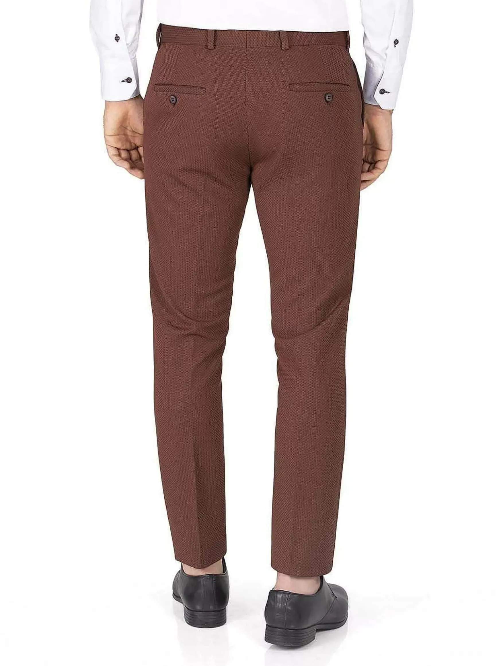 Peru Kleur Pantalon Voor Een Chique Look. Dit Model Heeft Een Heel Fijn Streepmotief, Twee Voorzakken En Een Ritssluiting.