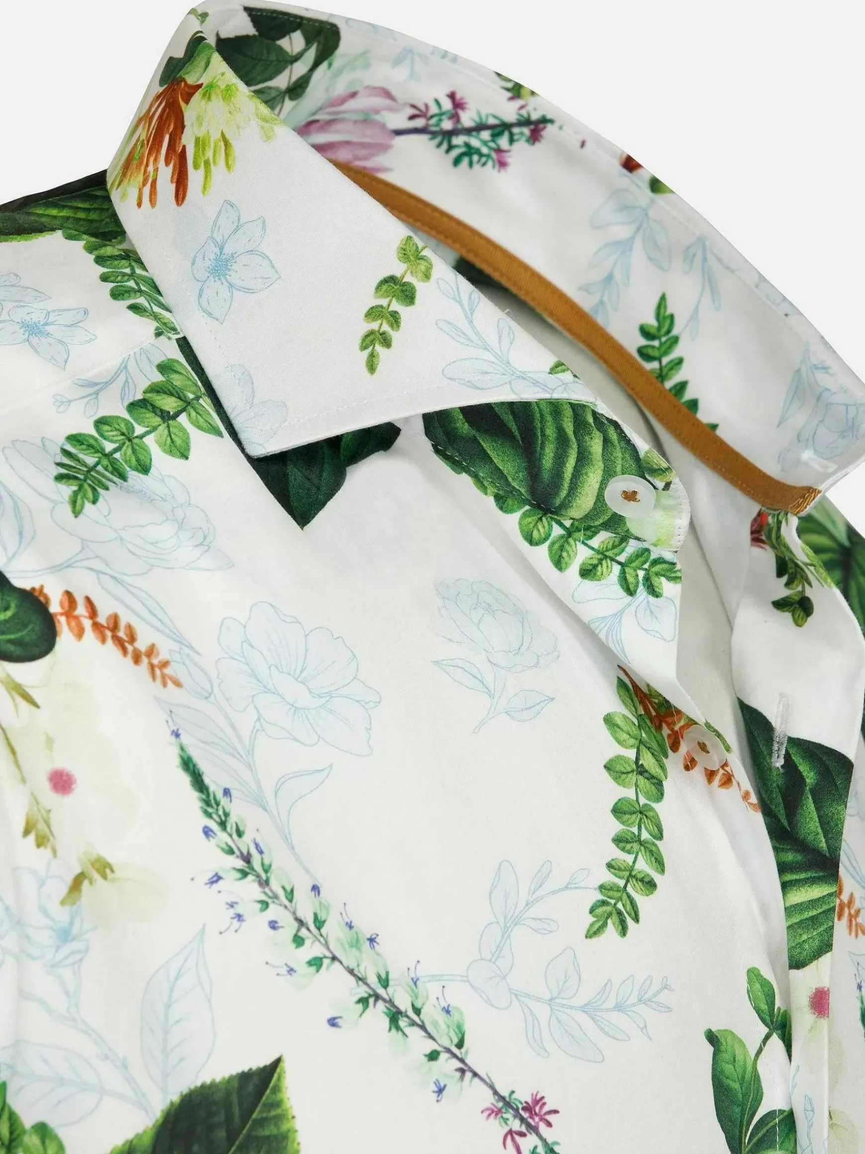 Parker Tailored Fit Wit Overhemd. Met Zijn Cutaway Kraag, Bloemenprint En Stretchstof Biedt Dit Overhemd Zowel Comfort Als Elegantie. Perfect Voor Elke Gelegenheid.