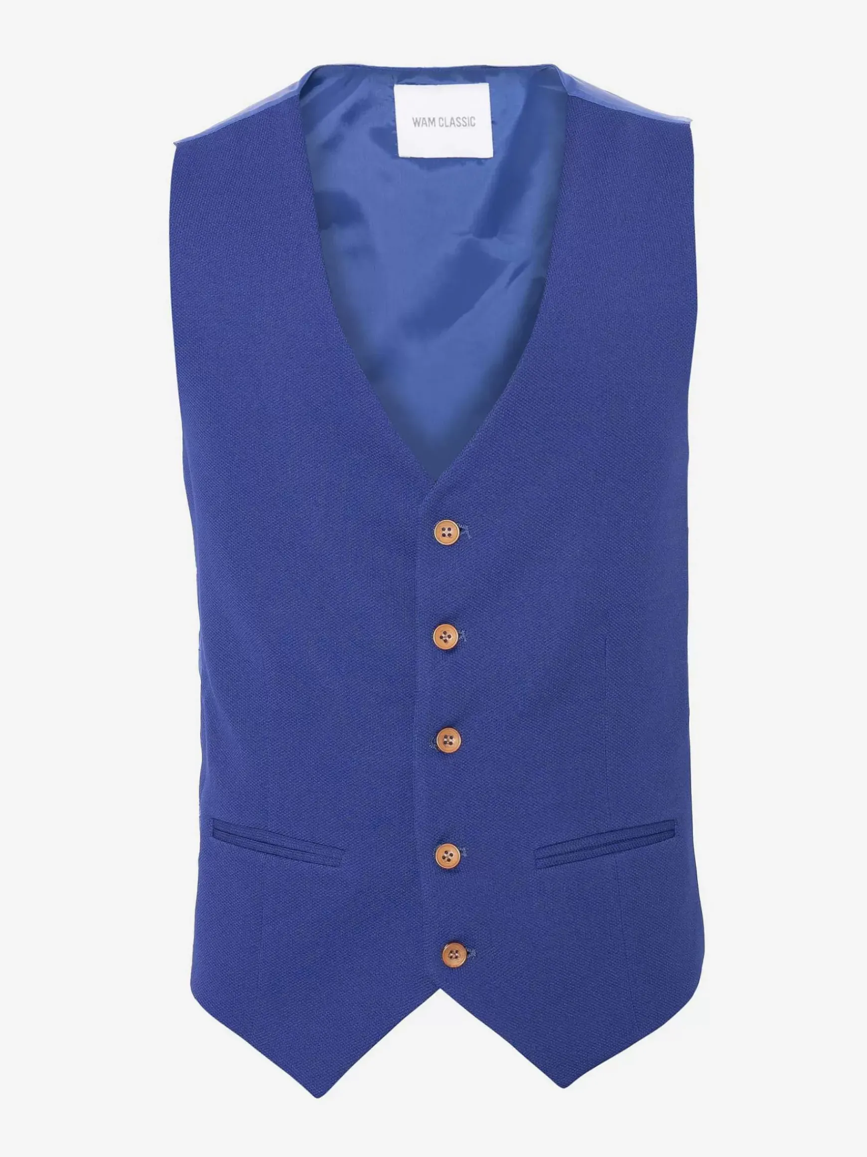 Chique Gilet In Een Opvallende, Mooie Kleur Blauw. Dit Model Is Fraai Afgewerkt Met Lichtbruine Knopen. Staat Goed Met Een Overhemd Op Een Pantalon Of Een Nette Jeans.