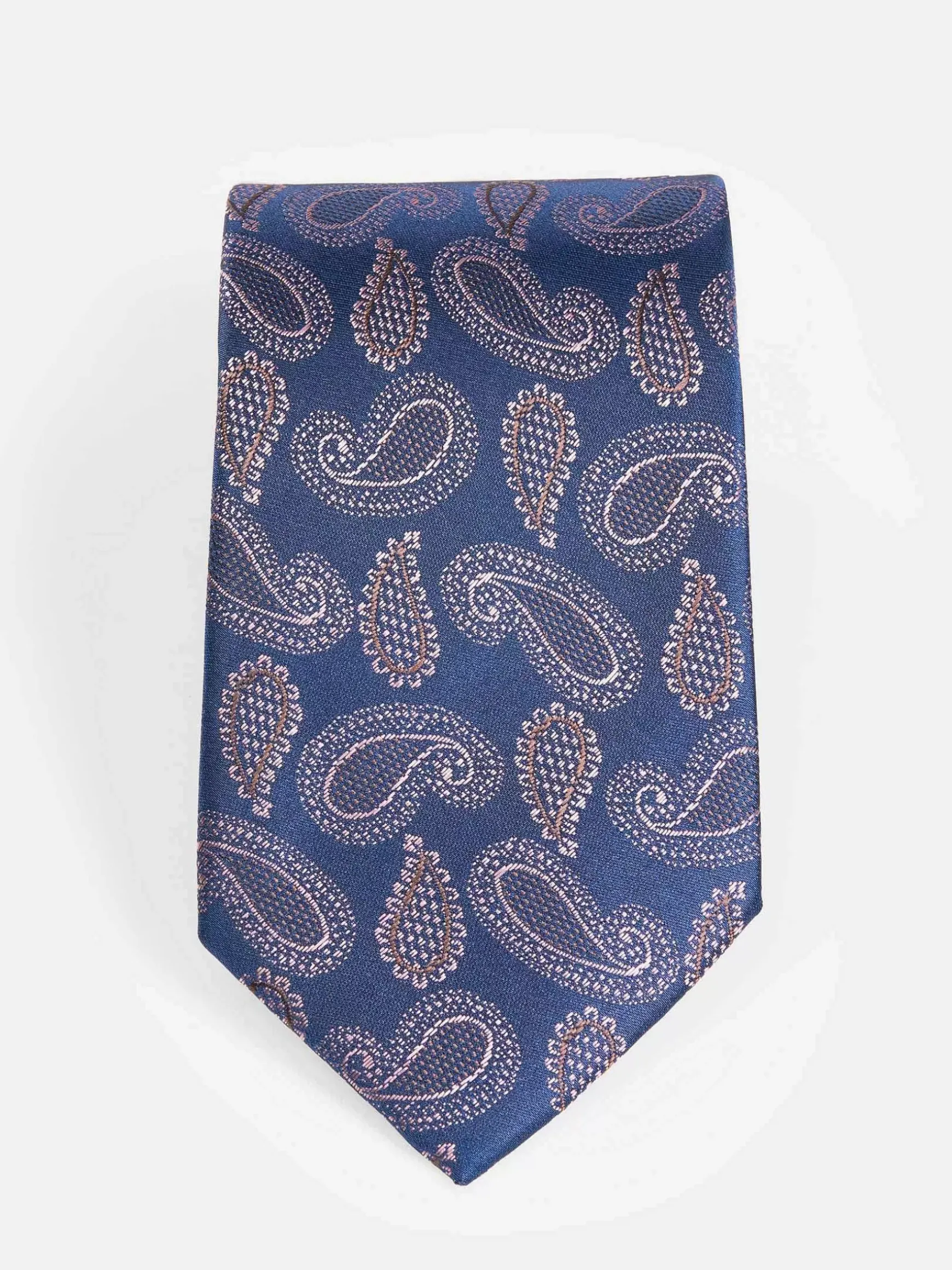 Navy Kleurige Stropdas Met Lichtroze Figuren. Een Opvallende Stropdas, Geschikt Voor Zowel Werk Als Vrij Tijd. Makkelijk Te Combineren Met Verschillende Outfits. Een Origineel Model En Aanwinst Voor Je Kledingkast.