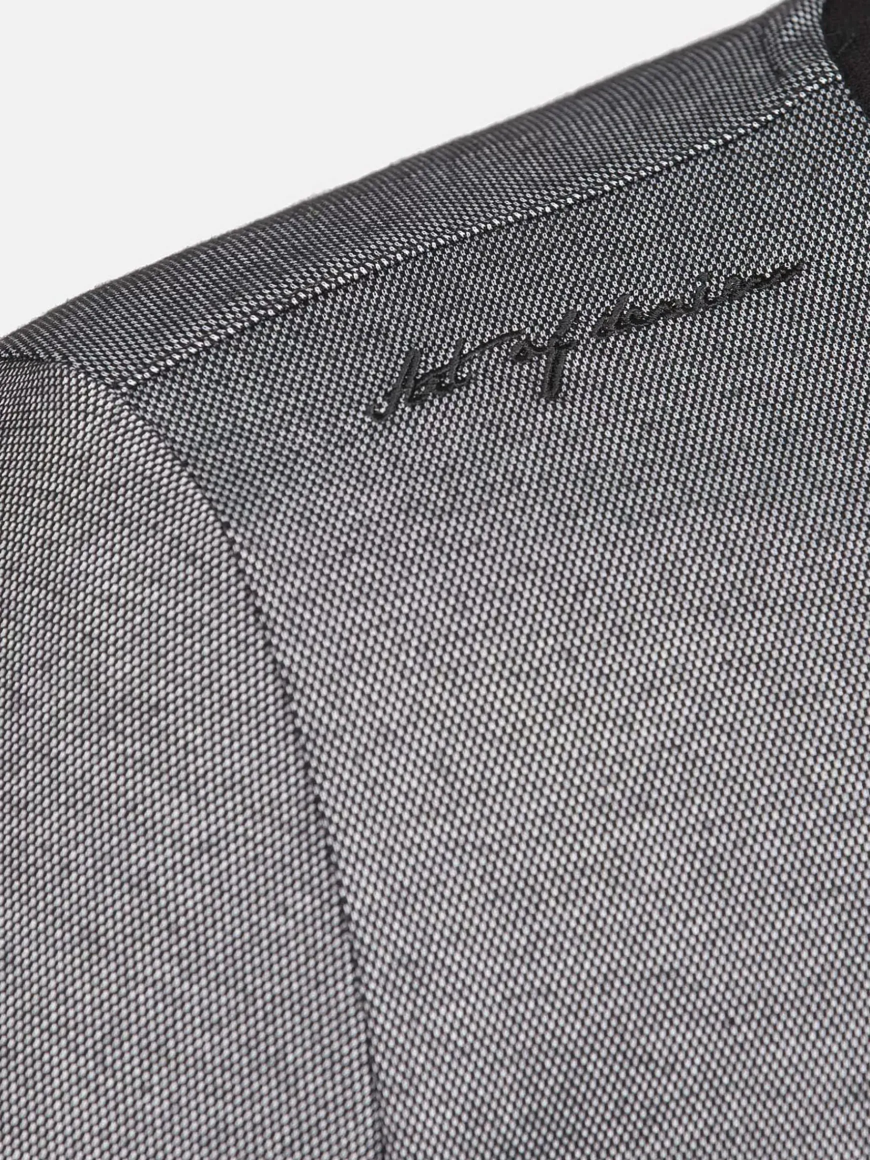 Antraciete Trui Met V-Hals. Deze Modieuze Sweater Is Met Verschillende Details Afgewerkt: Een Vierkant Embleem Op De Linkerborst, Tekst Op De Rechterborst En Een Gestikte Ritsluiting Op Zwart Vlak Op De Linkermouw.