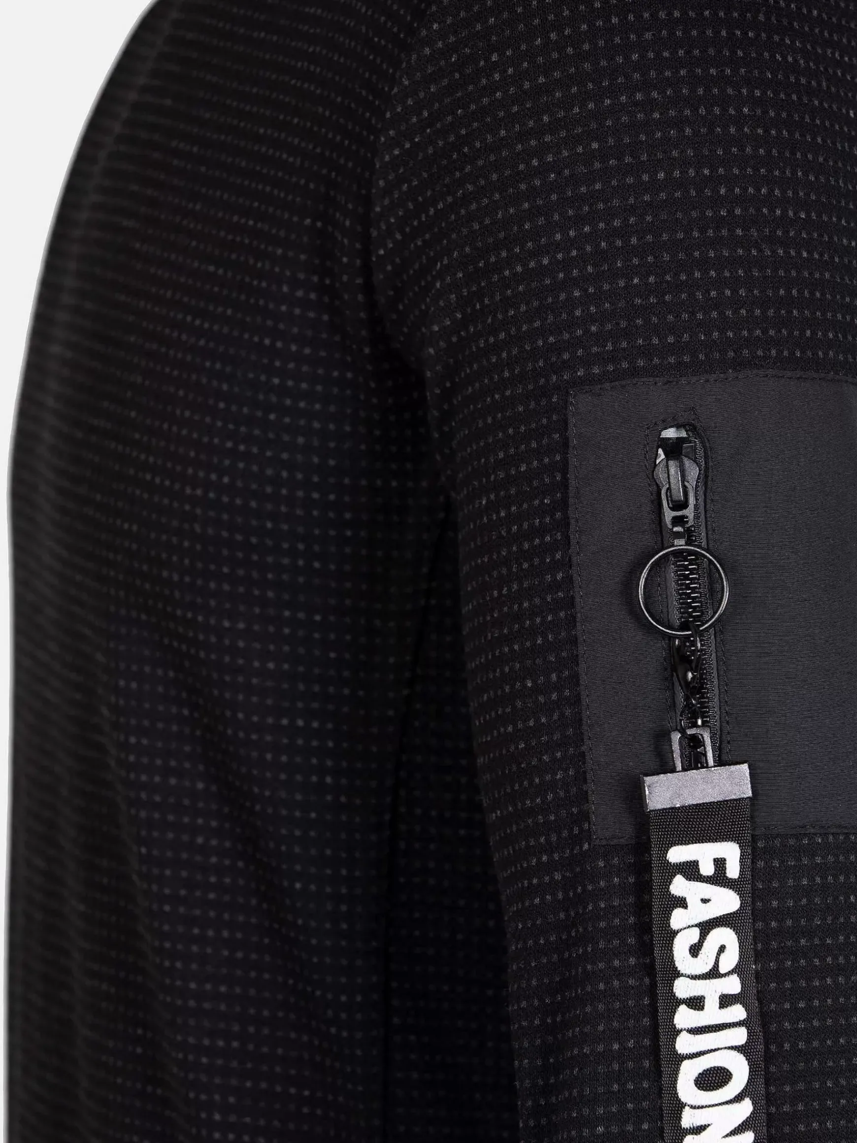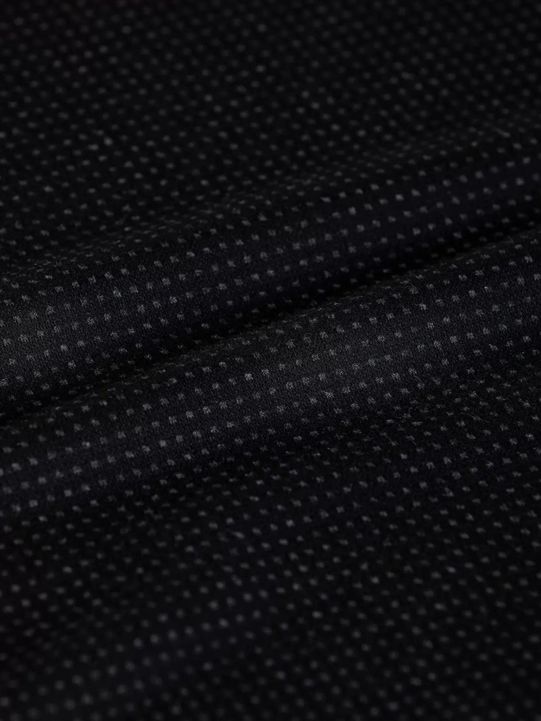 Zwarte Trui Met Ronde Hals En Heel Fijn Stippenpatroon Voor Een Mooi Effect. De Trui Heeft Een Merkembleem Op De Achterkant In De Hals En Suède Banden Op De Schouders. De Trui Heeft Een Elastisch Boord Aan De Onderkant Voor Een Perfecte Pasvorm. De Uiteinden Van De Mouwen Zijn Ook Van Stretch.