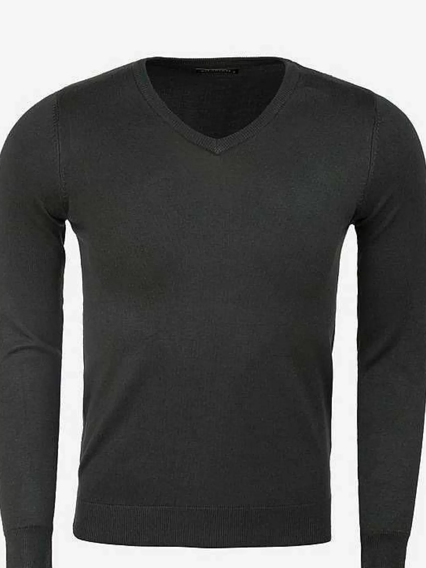 Donkergroene Sweater Met V-Hals. Door De Stof Voelt De Sweater Heel Zacht Aan En Door De Stretch In De Boord Aan De Onderkant Heeft Dit Model Een Comfortabel Pasvorm. De Sweater Kan Zowel Op Een Pantalon Als Op Een Jeans Gedragen Worden.
