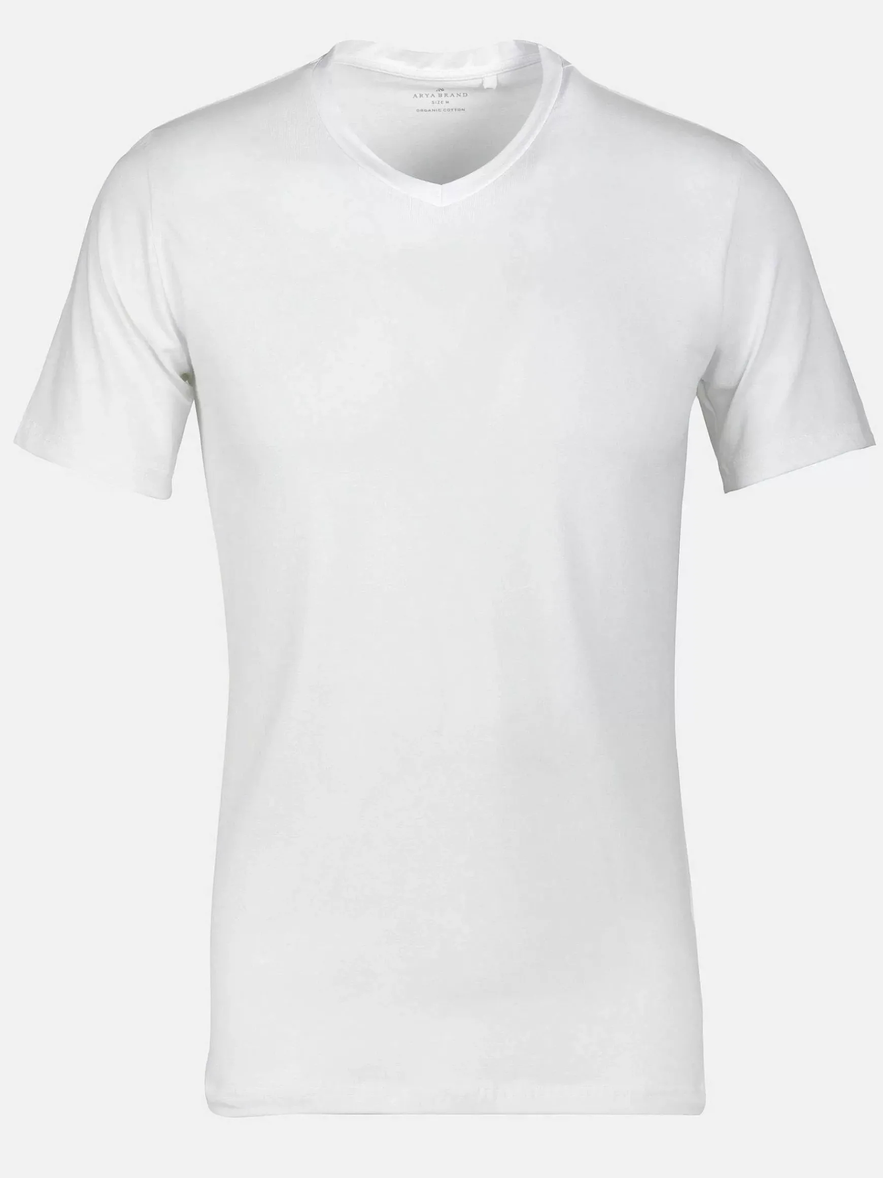 Wit T-Shirt Met V-Hals. De Slim Fit Pasvorm Zorgt Voor Een Fijn Draagcomfort.