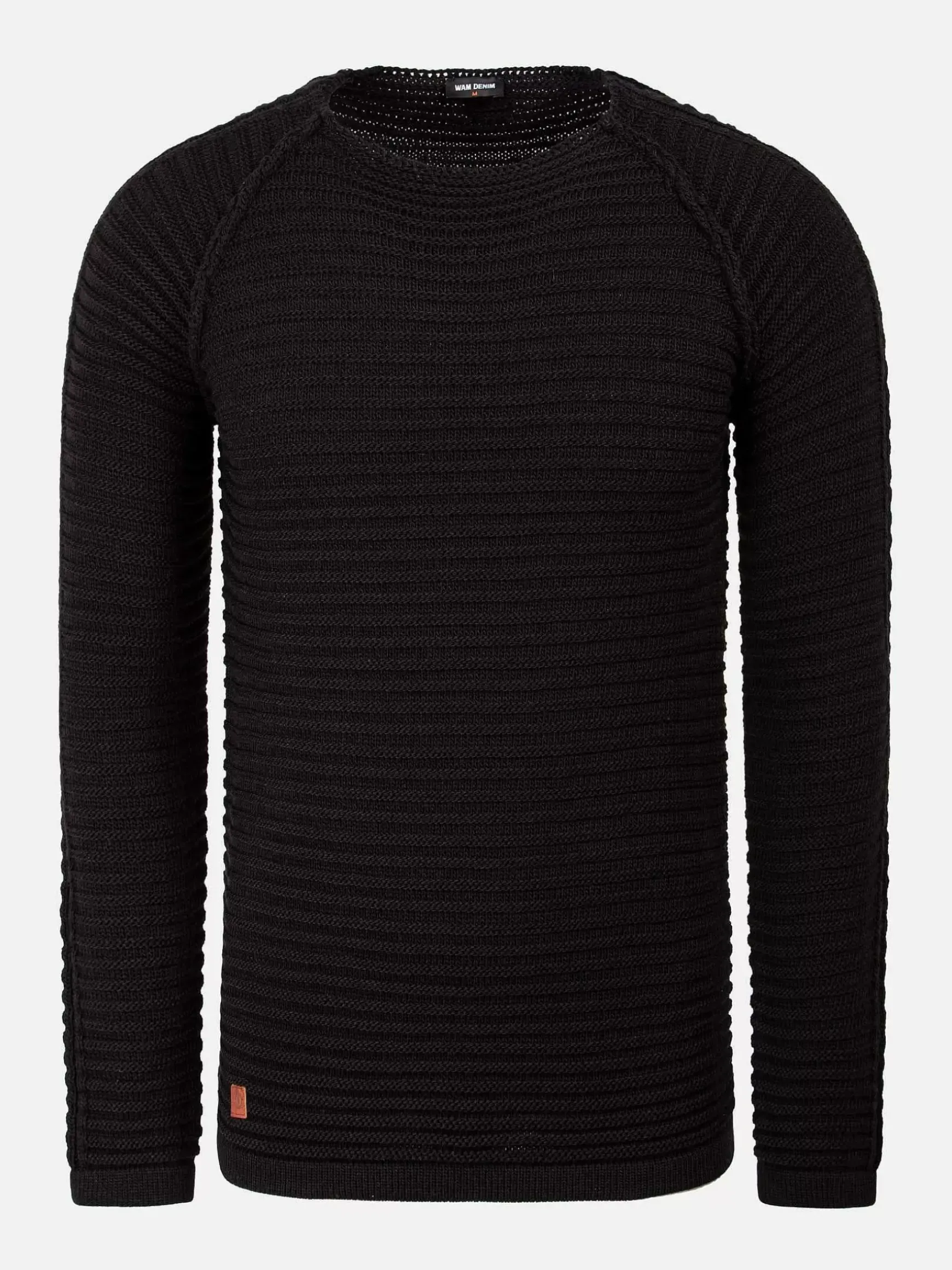 Zwarte Trui Met Slim Fit Pasvorm, Ronde Hals En Lange Mouwen. Met Detail Afgewerkt, Bruin Embleem Rechtsonder Aan De Trui.