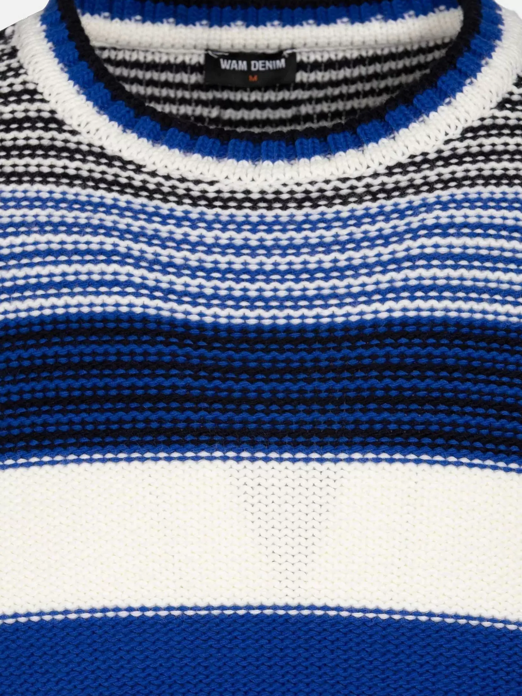 Royal Blue Sweater Heeft Een Meerkleurig Streepmotief Met Ronde Hals. De Trui Heeft Een Comfortabele Pasvorm En Een Warme Uitstraling.
