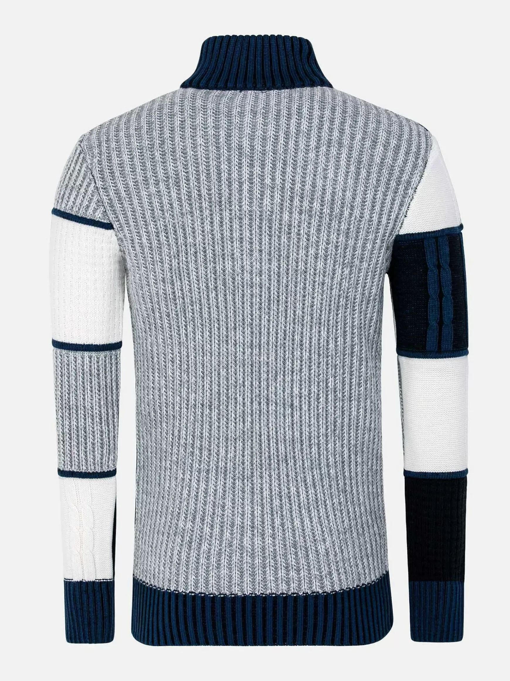 Prachtige Trui Met Een Elegante Uitstraling In Een Mooie Driekleur Combinatie. De Trui Heeft Een Opvallend Design Met Knopen In De Hals Die Dit Model Iets Extra’S Geven. Voor Een Stijlvolle Look Draag Je Deze Trui Op Een Nette Jeans Of Chino.