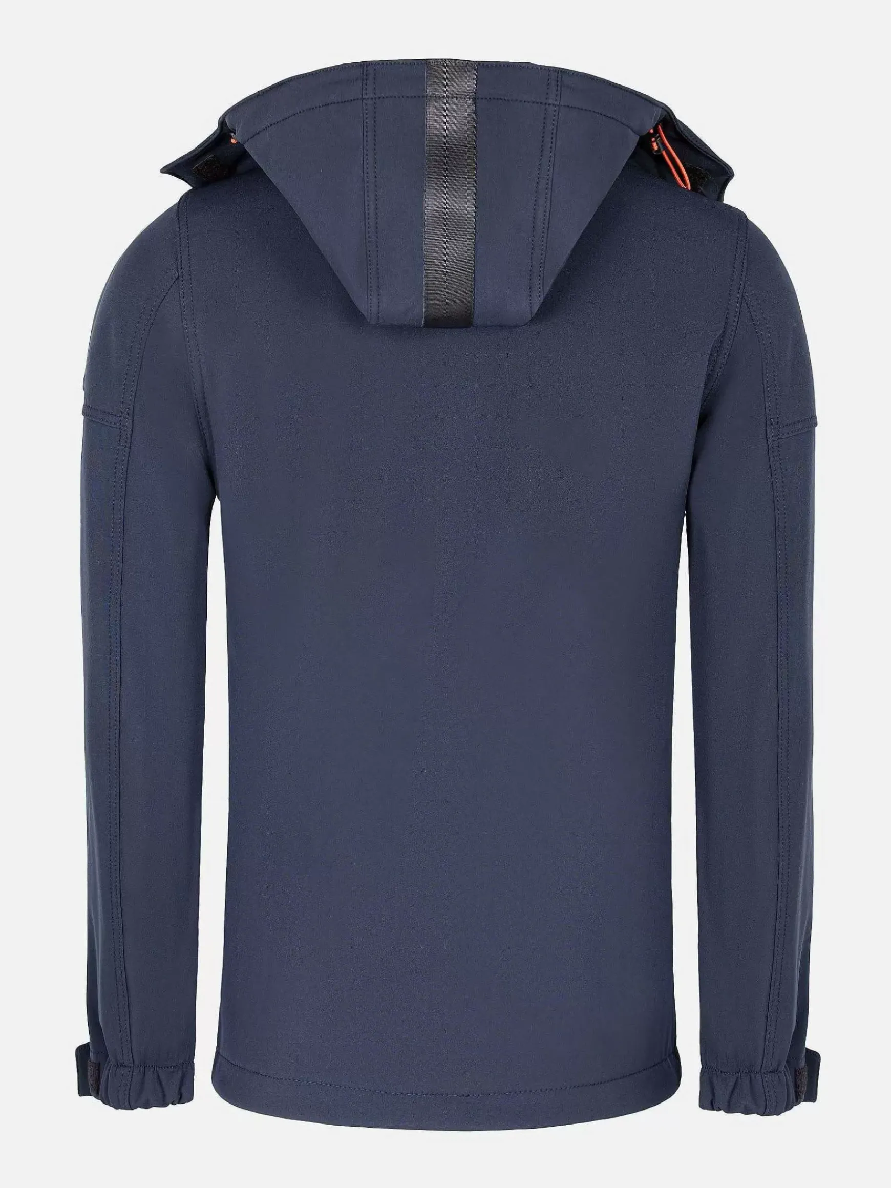 Navy Winterjas Met Capuchon. De Jas Heeft Een Ritssluiting, Twee Steekzakken En Twee Zakken Bovenin Met Ritssluiting.