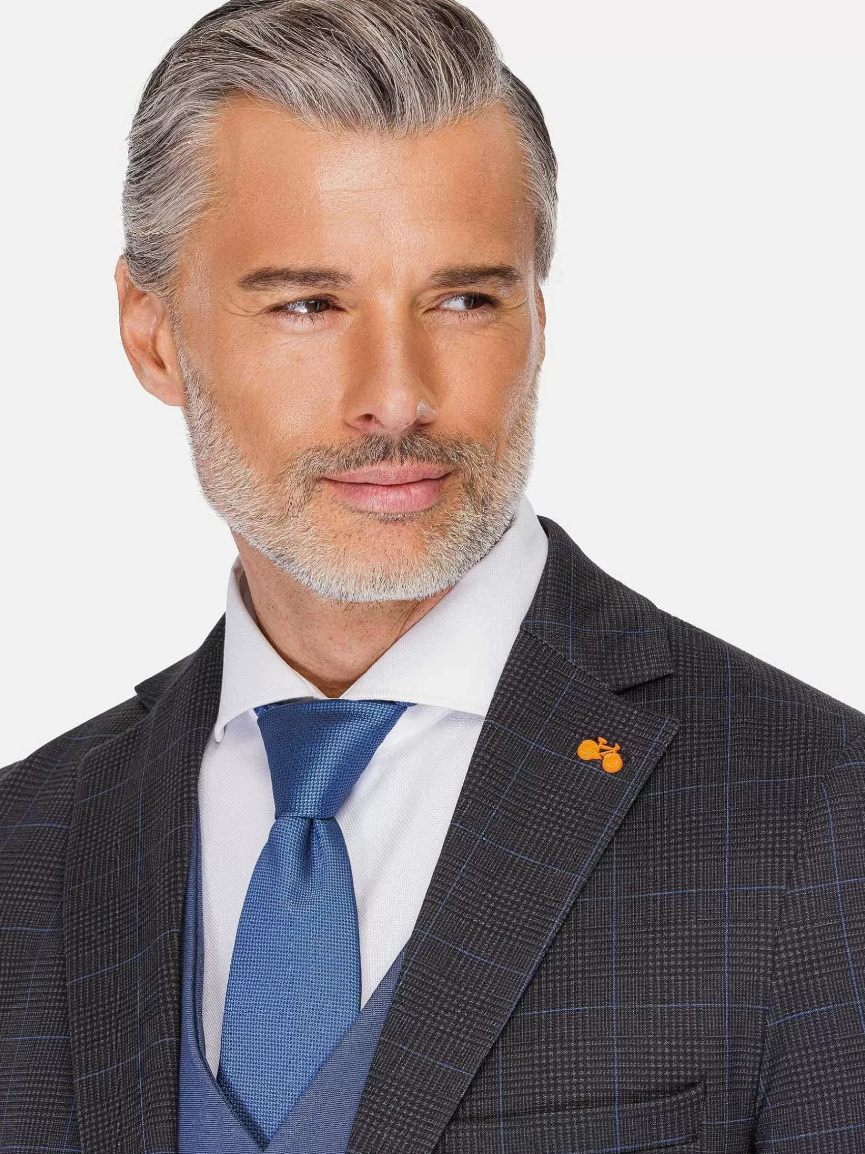 Ervaar Het Toppunt Van Vakmanschap Met De Indigo Marineblazer Met Schuttersruit. Het Is Perfect Op Maat Gemaakt, Voor Een Onberispelijke Pasvorm En Silhouet. De Gestructureerde Schouders, Slanke Revers En Getailleerde Pasvorm Zorgen Voor Een Gestroomlijnde En Verfijnde Uitstraling Die Je Natuurlijke Lichaamsbouw Versterkt. Stap Zelfverzekerd Elk Evenement Binnen, Wetende Dat Je Stijl Op Punt Staat.