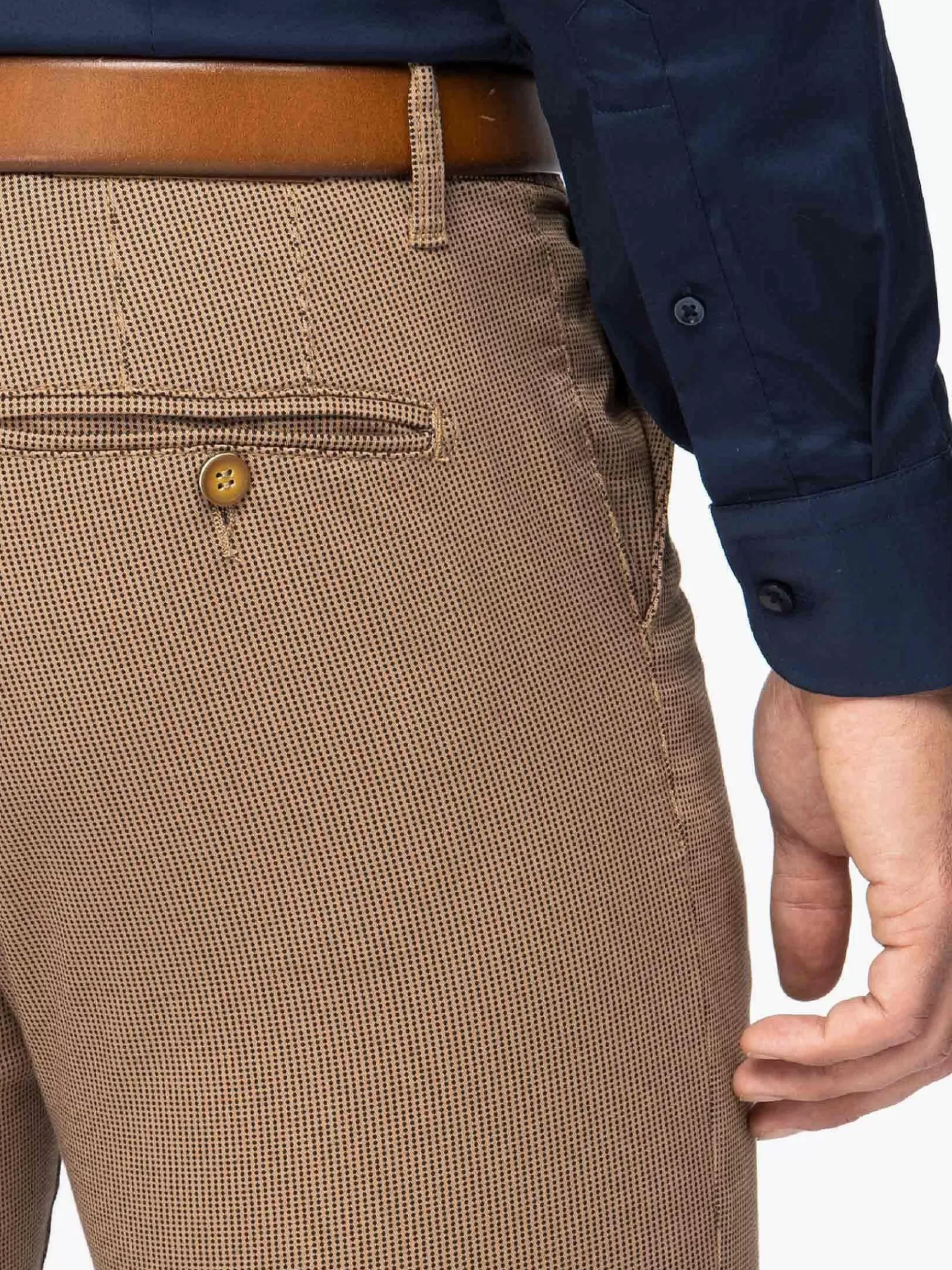 Ontdek Een Moeiteloze Stijl Met Onze Donkerbeige Herenchino. Deze Chino Heeft Een Geraffineerd Ontwerp Met Steekzakken En Combineert Comfort En Elegantie Naadloos. Gemaakt Van Eersteklas Stof, Met Een Perfecte Pasvorm En Tijdloze Aantrekkingskracht. Verhoog Je Garderobe Met Deze Veelzijdige Essential, Die Moderne Verfijning Belichaamt Bij Elke Stap.