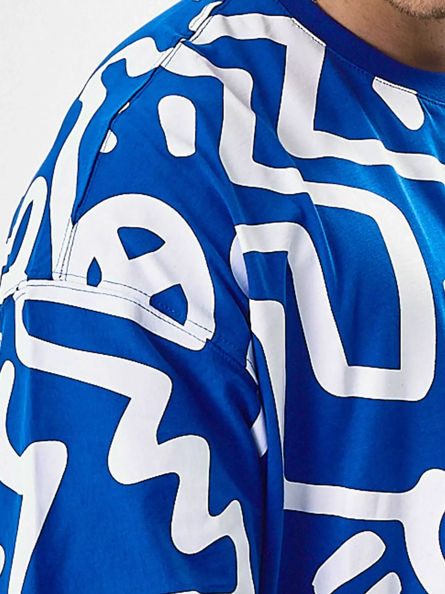 Byron Royal Blue T-Shirt. Met Een Korte Manchet, Geribde Ronde Hals En Een Unieke Print Op Zowel De Voor- Als Achterkant Is Dit T-Shirt Van 100% Zacht Katoen Een Must-Have Voor Elke Gelegenheid.
