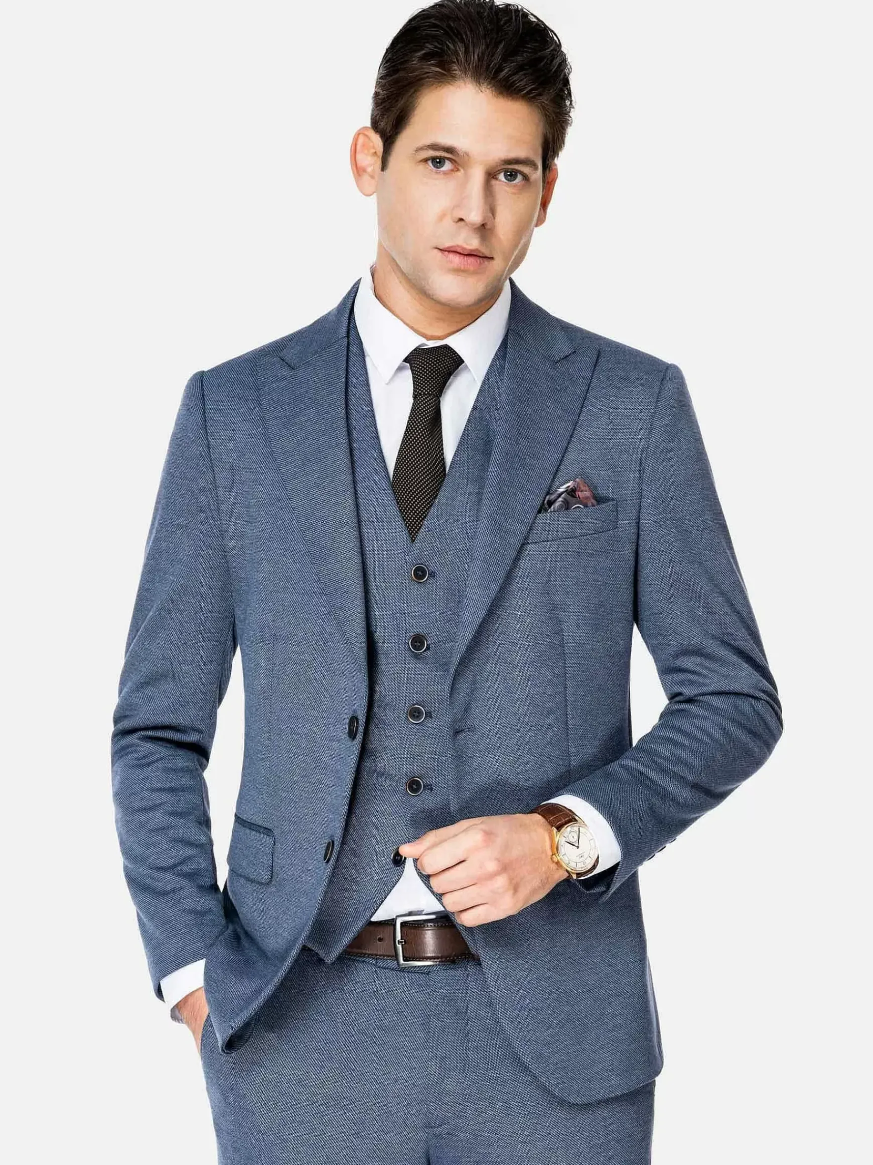 Licht Getailleerd Colbert Met Brede Revers In Een Mooie Kleur Blauw. Dit Model Heeft Twee Knoopsluitingen En Twee Klepzakken. Past Goed Op Een Pantalon Met Een Overhemd, Maar Kan Ook Gedragen Worden Op Een Jeans Voor Een Wat Vlottere Outfit. De Borstzak Van Het Jasje Kan, Wanneer Deze Naar Buiten Wordt Gedraaid, Worden Gepresenteerd Als Een Extra Accessoire In De Vorm Van Een Pochet Van 100% Polyester.