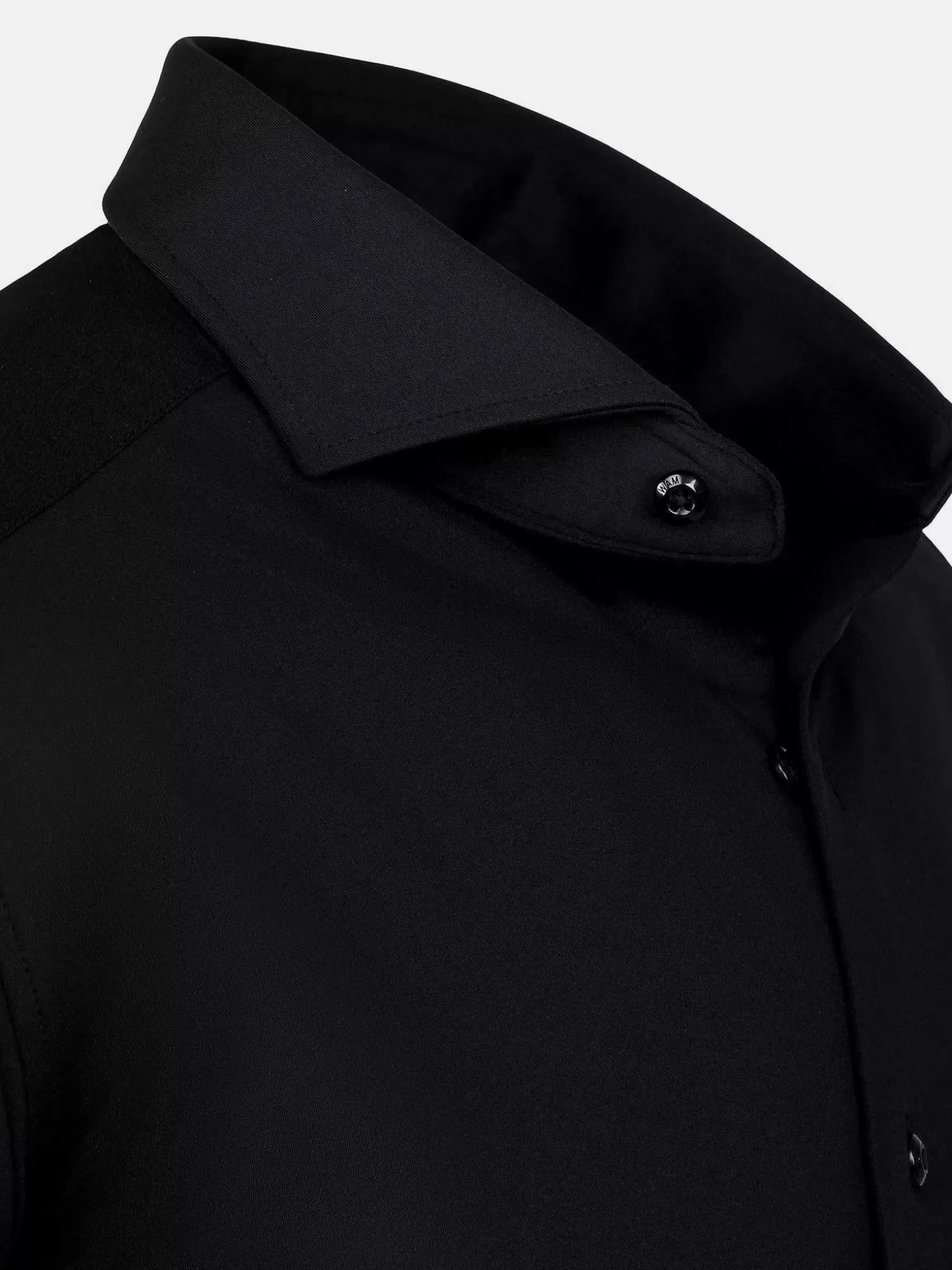 Everest Stretched Black Long Sleeve Shirt – Een Perfecte Mix Van Comfort En Gemak. Dit Overhemd Is Gemaakt Van Geavanceerde Stretchstof En Past Zich Moeiteloos Aan Uw Bewegingen Aan, Zodat U De Hele Dag Door Verzekerd Bent Van Maximaal Comfort. Bovendien Bespaart Het Strijkgemak Je Niet Alleen Tijd, Maar Het Zorgt Er Ook Voor Dat Je Er Scherp En Gepolijst Uitziet, Waardoor Het Een Essentieel Kledingstuk Is Voor De Moderne Gentleman.