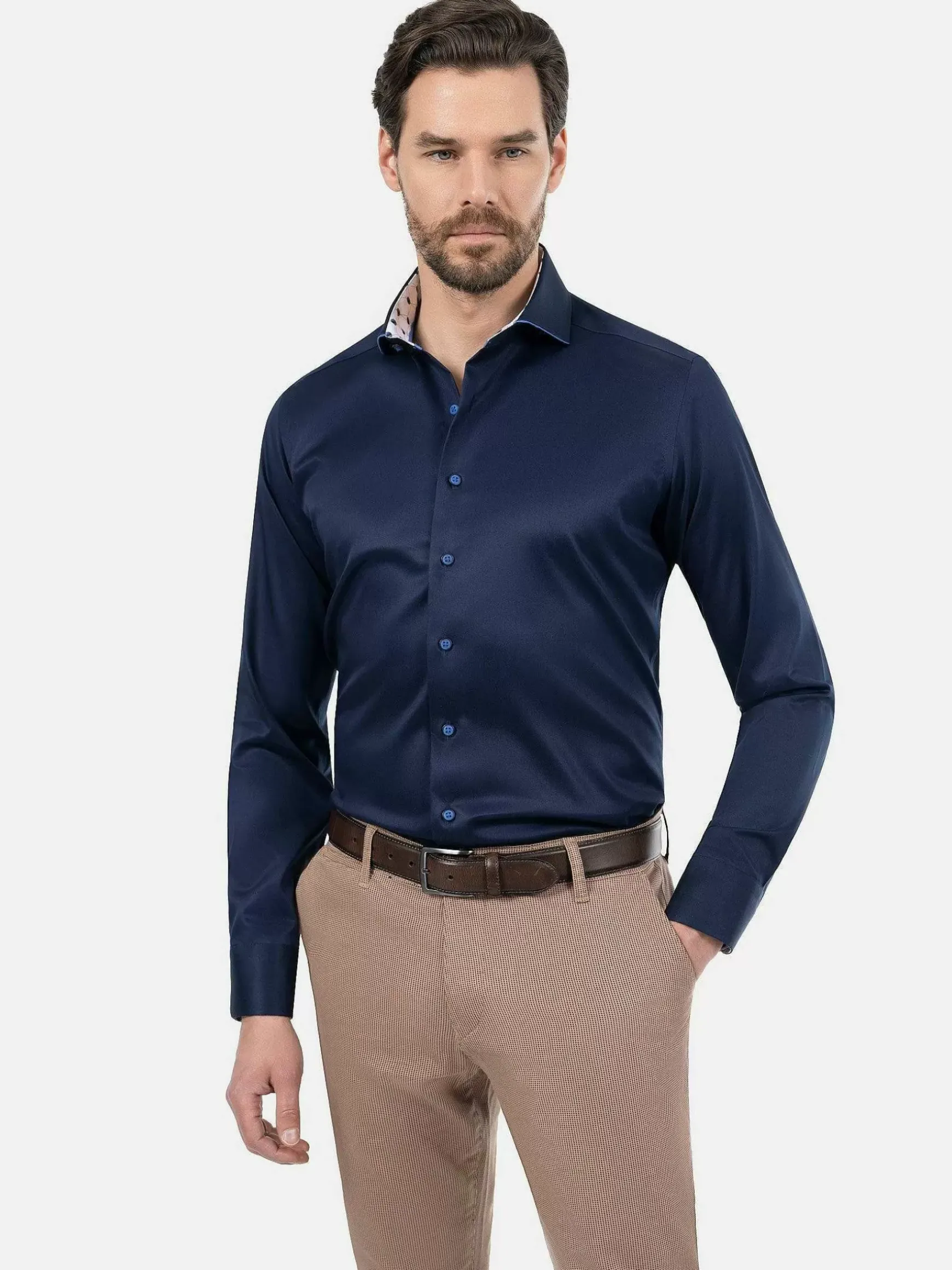 Stijlvol Overhemd In Effen Donkerblauw. Een Klassiek Overhemd Met Veel Uitstraling Die Iedere Man In Zijn Garderobe Moet Hebben. Door De Neutrale Kleur Is Dit Model Makkelijk Te Combineren Met Veel Kleuren.