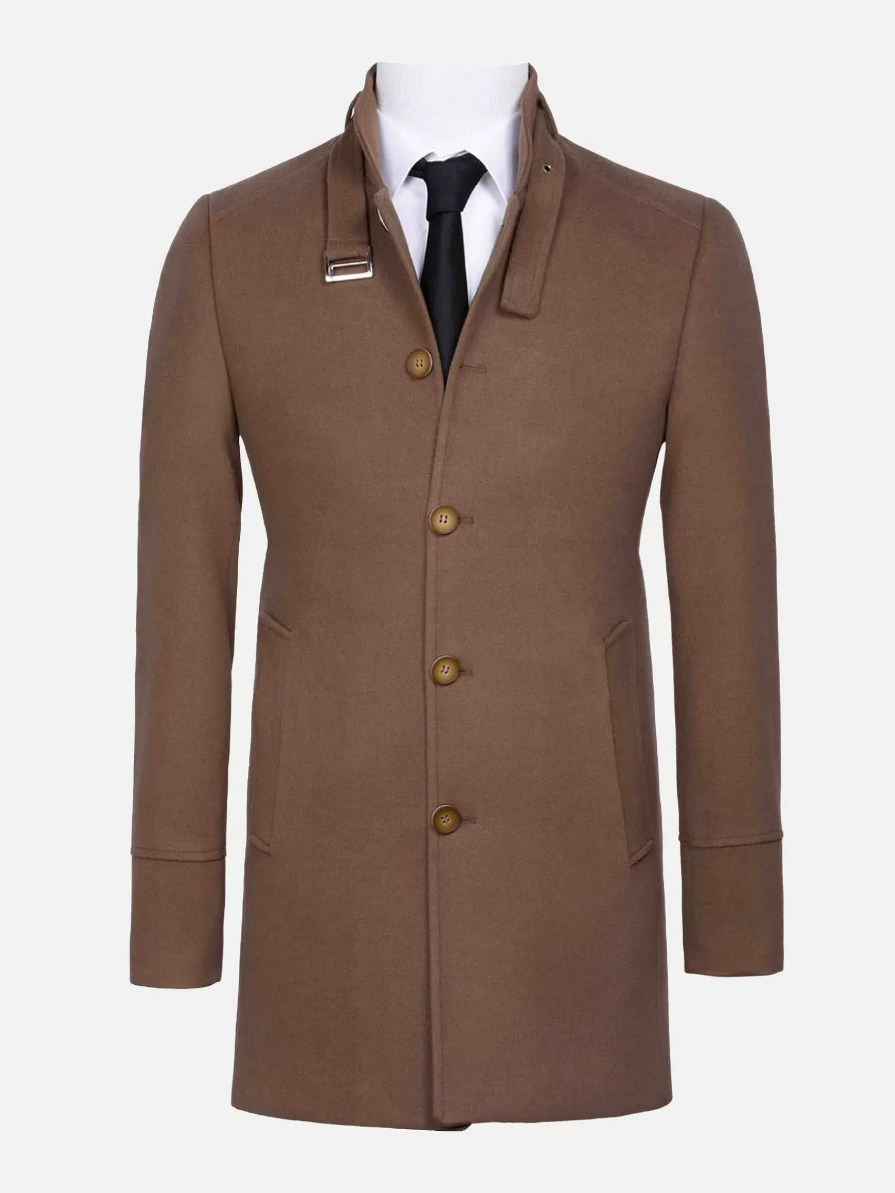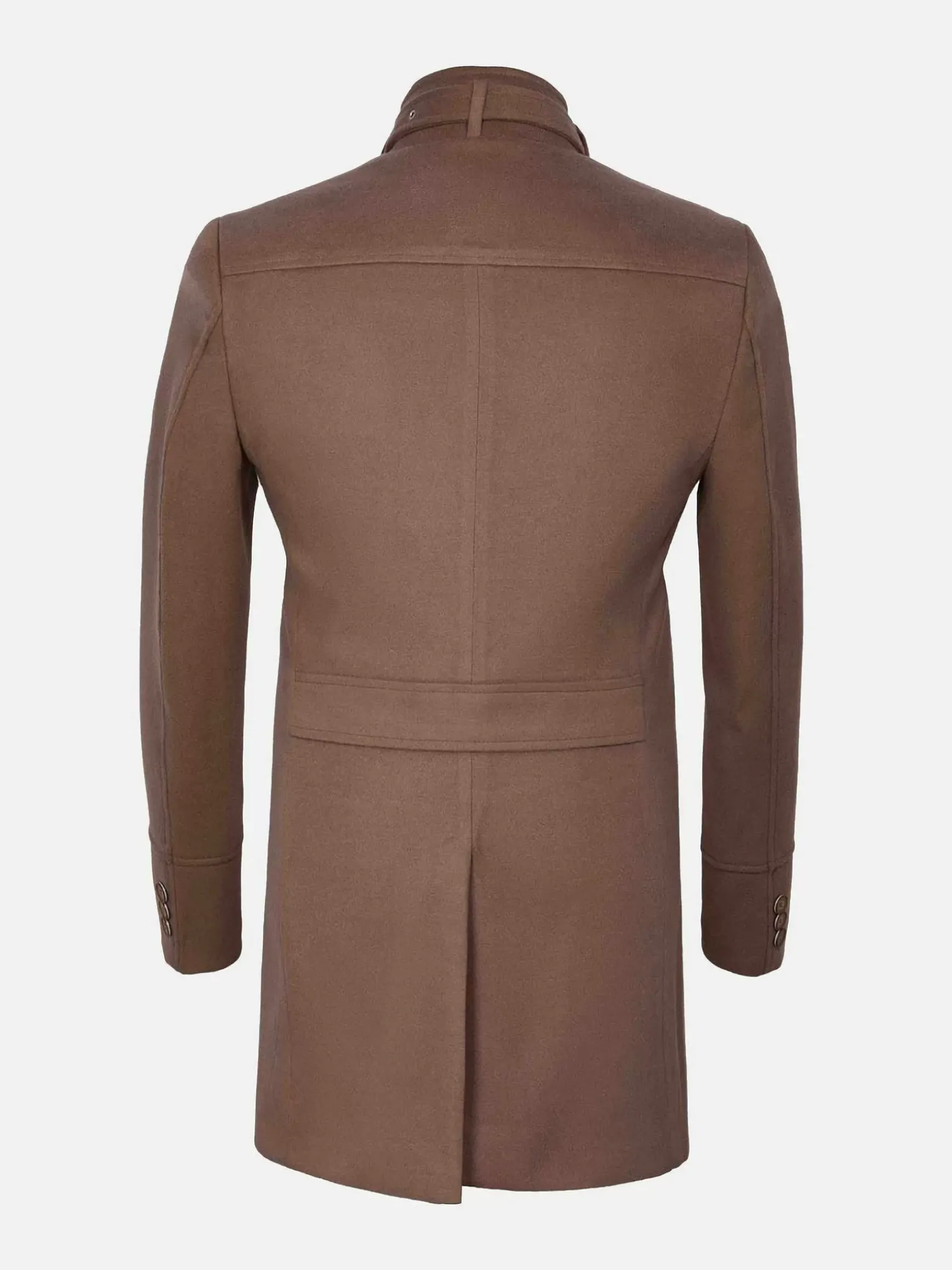 Peru Kleurige Trenchcoat Met Knoopsluiting. Dit Getailleerde Model Is Fraai Afgewerkt Met Een Subtiele Riem Met Een Zilverkleurige Gesp In De Kraag. Aan De Voorzijde Zijn Twee Zakken Gestikt En De Manchetten Hebben Drie Ronde Knopen.
