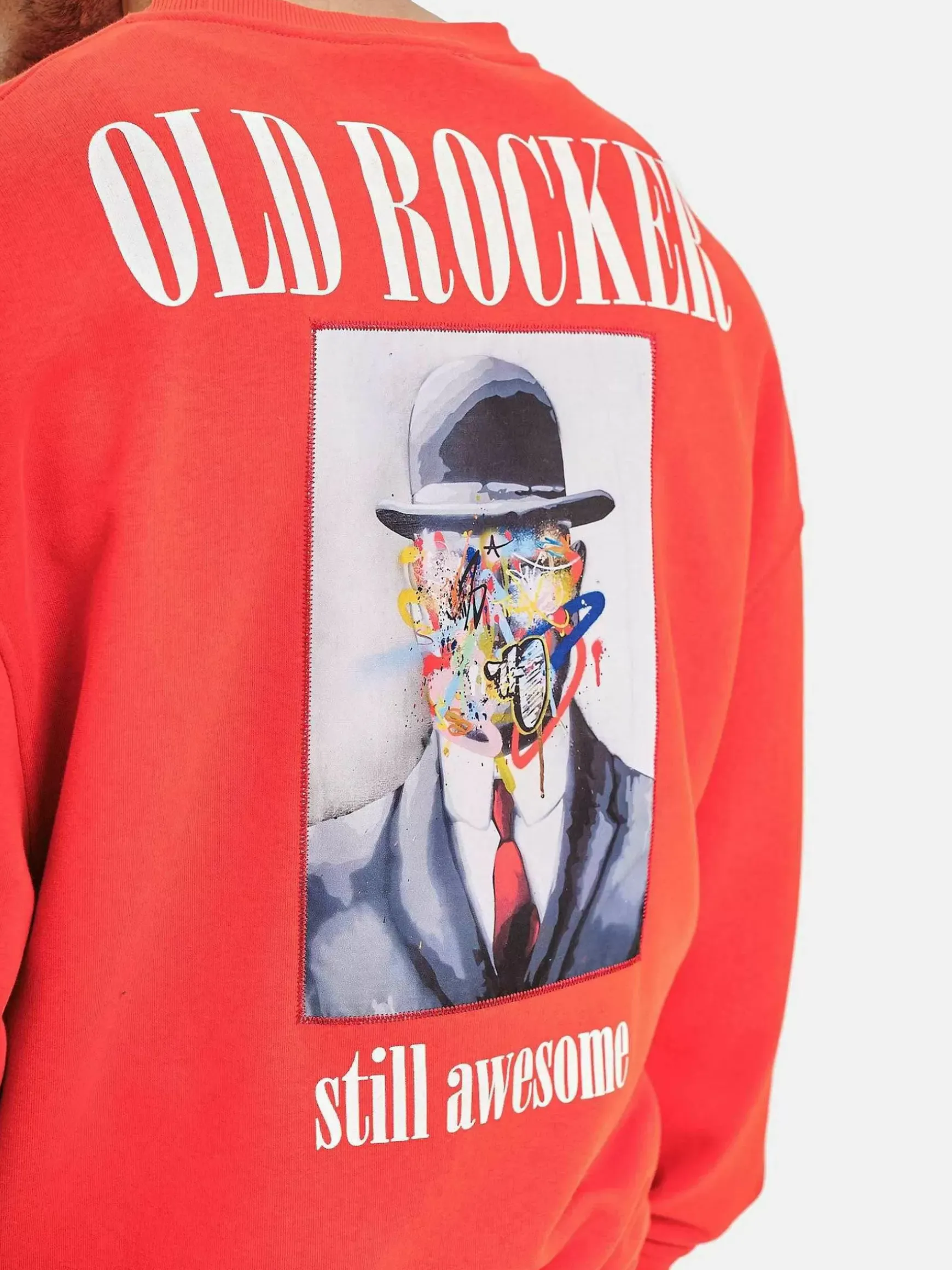 Melvin Red Sweater. Met Een Iconische Old Rocker Print Op De Voor- En Achterkant, Ronde Hals, Geribde Manchetten En Zoom, En Een Perfecte Mix Van Klassiek En Modern In Een Normale Pasvorm. Blijf Het Hele Seizoen Warm En Modieus.
