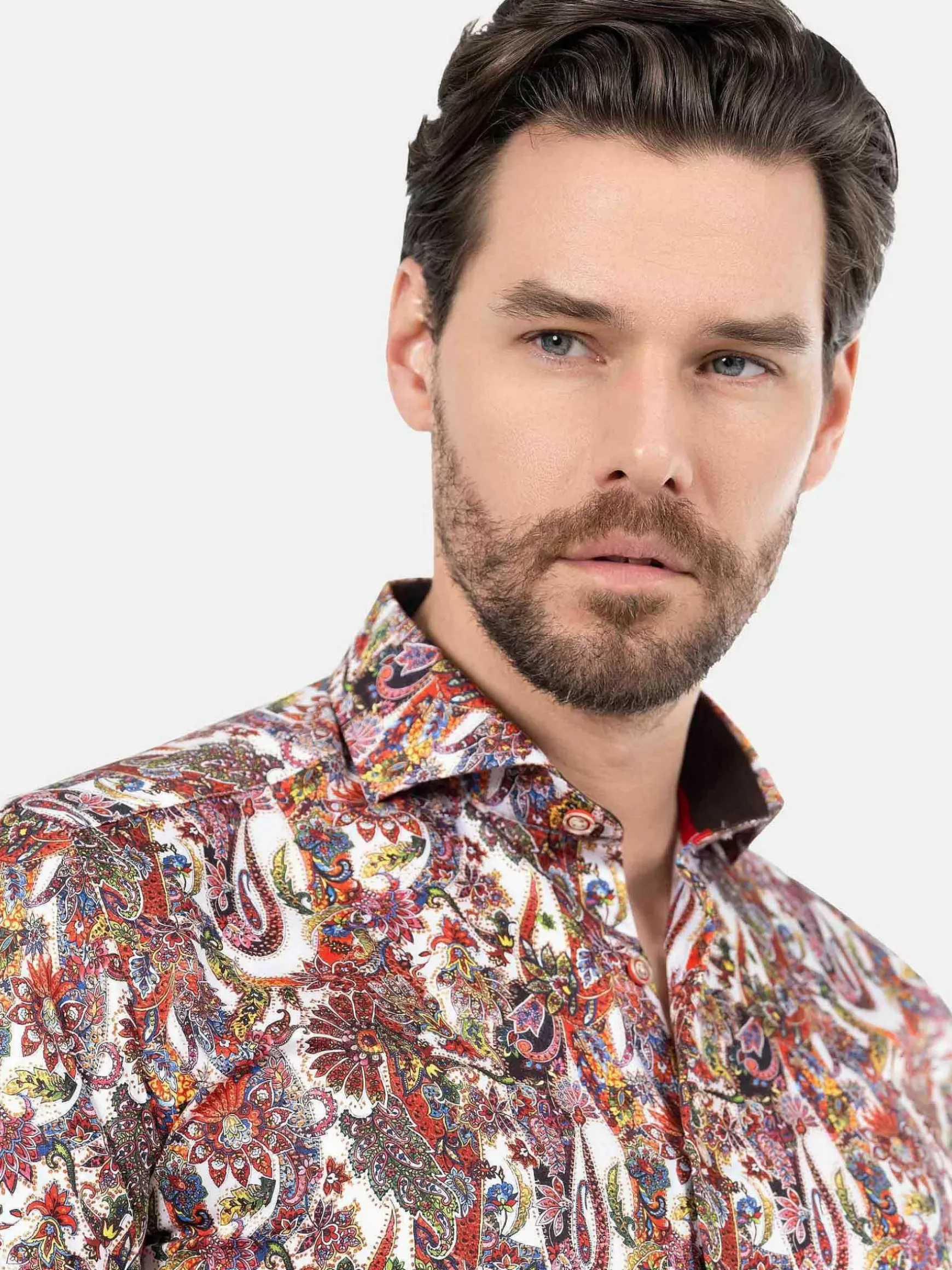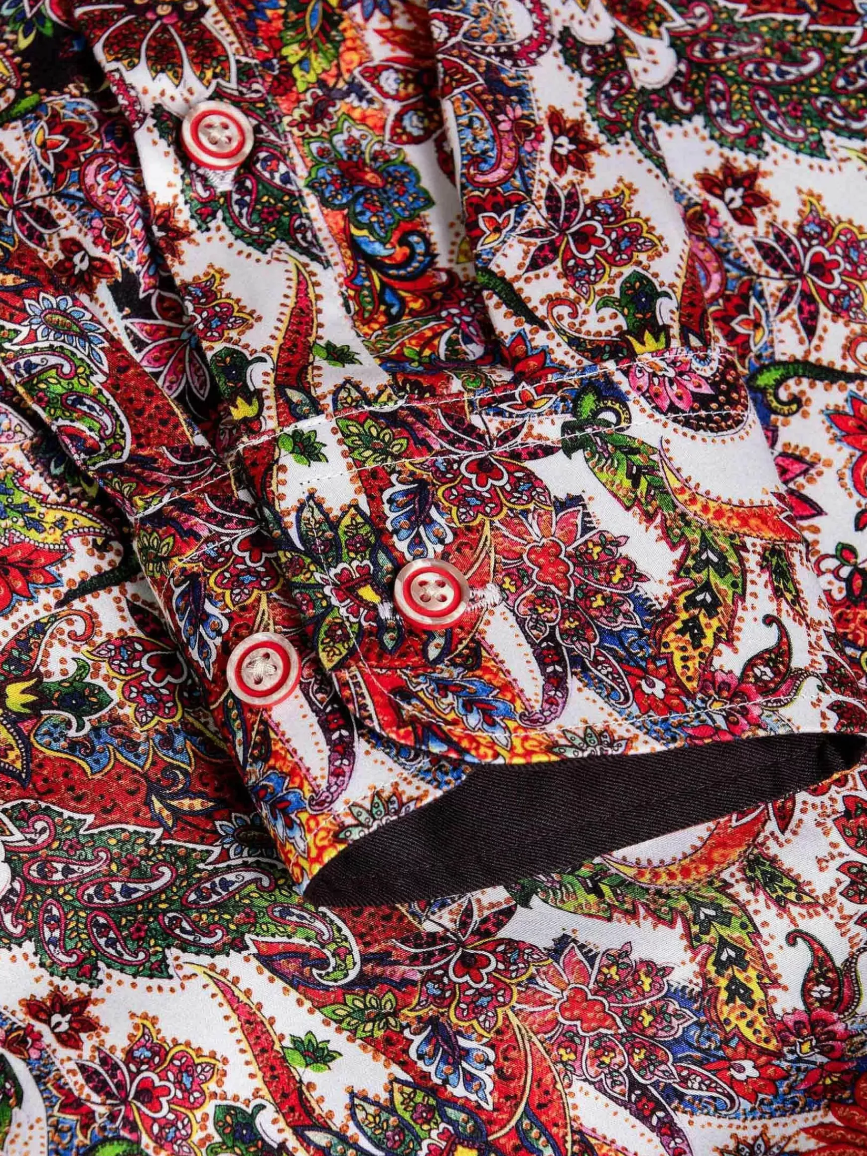 Dit Artistieke Overhemd Heeft Een Prachtig Kleurenpalet. Door De Combinatie Rood, Roze, Paars En Wit Is Dit Een Bijzonder Ontwerp. Dit Overhemd Met Deze Kleuren En Met Dit Motief Laat Zich Goed Combineren Met Een Effen Pantalon Of Jeans.
