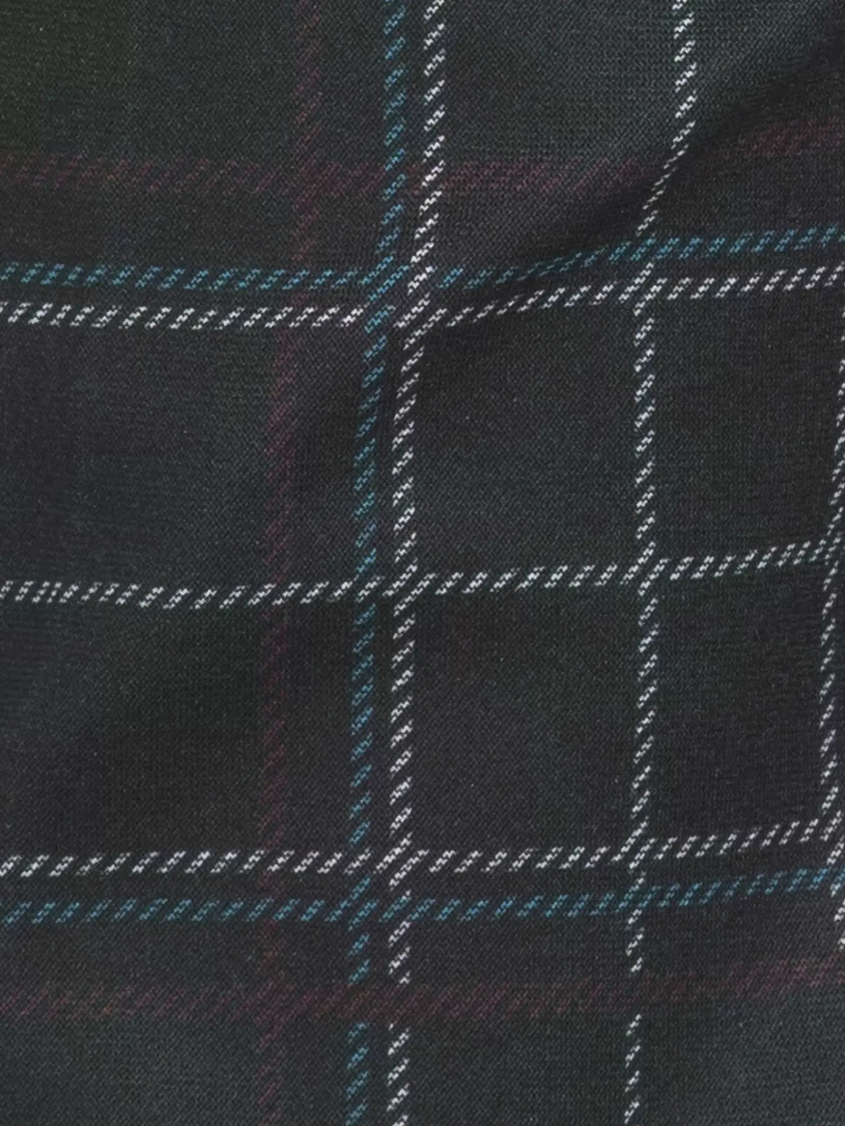 Donkergroene Pantalon Met Een Slim Fit Design Voor Een Perfect Draagcomfort. Dit Model Heeft Een Ritssluiting En Zakken Aan De Voor- En Achterzijde. Er Is Een Subtiel Geruit Patroon In De Stof Verwerkt.