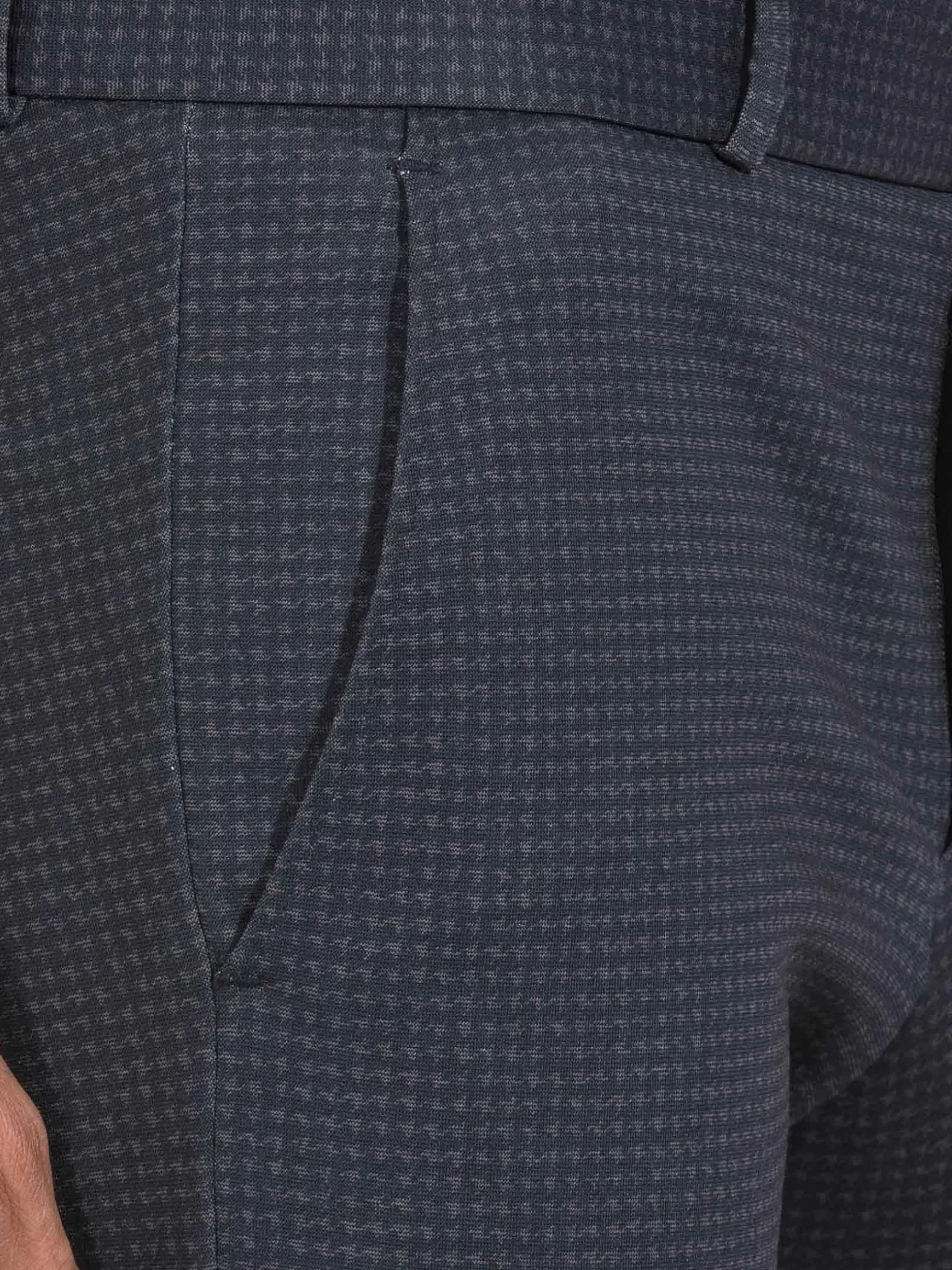 Blauwgrijze Pantalon Met Een Slim Fit Design Voor Een Perfect Draagcomfort. Dit Model Heeft Een Ritssluiting En Zakken Aan De Voor- En Achterzijde. Er Is Een Subtiel Pied-De-Poule Patroon In De Stof Verwerkt.