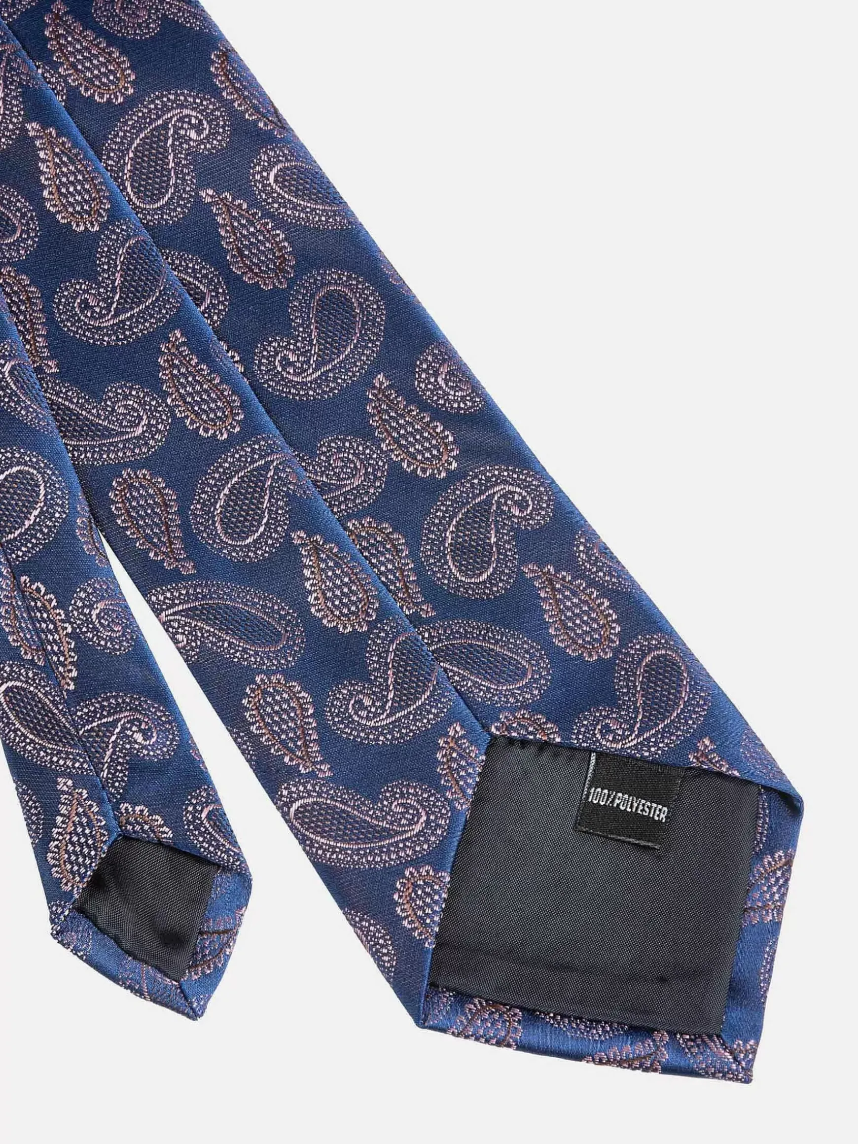 Navy Kleurige Stropdas Met Lichtroze Figuren. Een Opvallende Stropdas, Geschikt Voor Zowel Werk Als Vrij Tijd. Makkelijk Te Combineren Met Verschillende Outfits. Een Origineel Model En Aanwinst Voor Je Kledingkast.