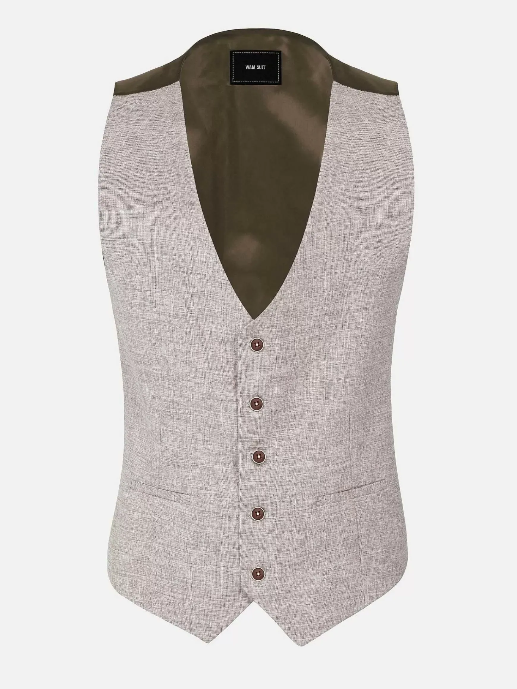 Cullen Beige Gilet. Het Model Is Getailleerd En Heeft Een Rekbare Stof Voor Comfort, Twee Kleine Horlogezakken En Een Stijlvolle Vijfknoopssluiting. Verfraai Je Ensemble Met Tijdloze Elegantie.