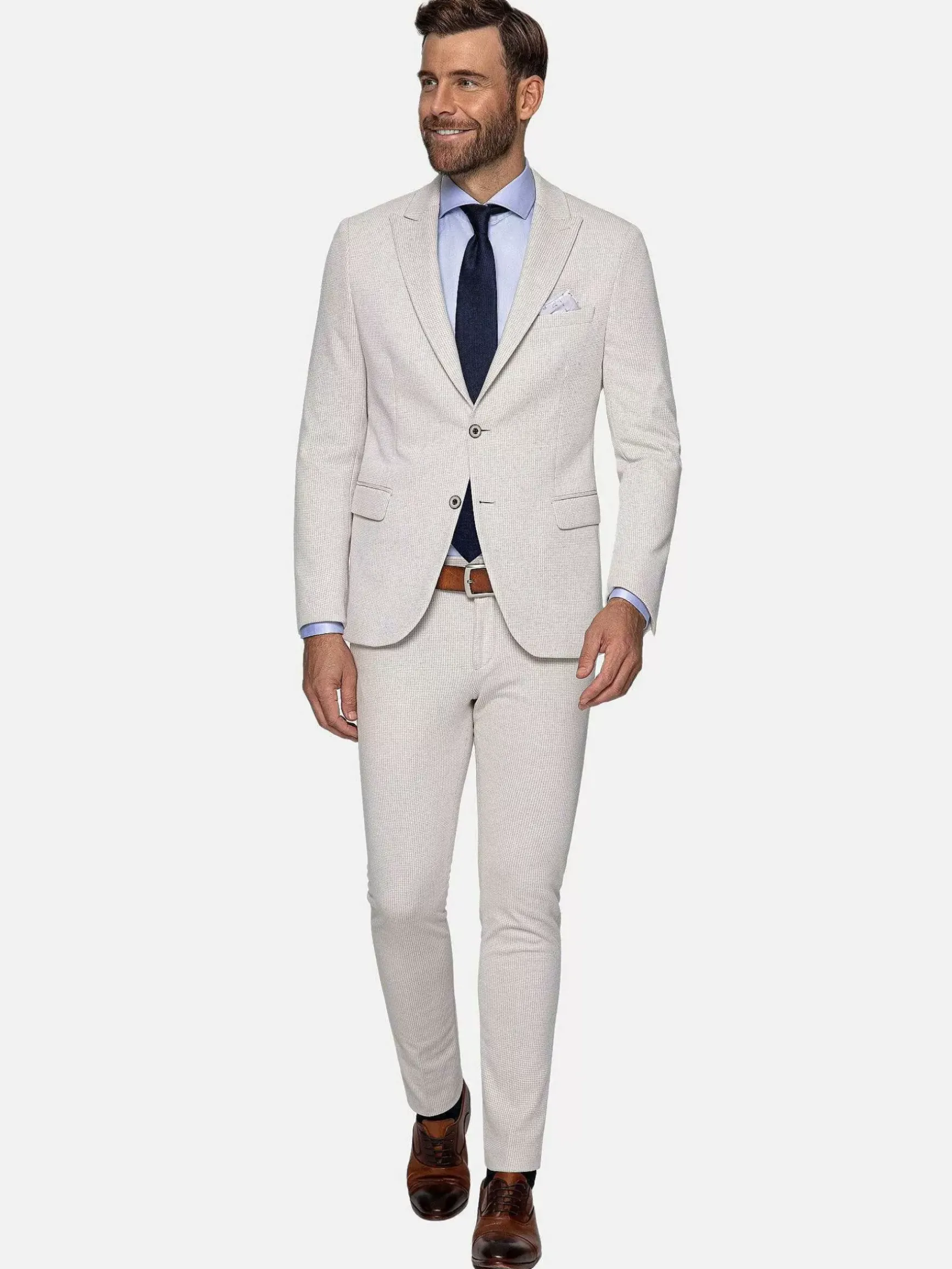 Stijlvolle Pantalon In Een Mooie Beige Kleur Met Twee Steekzakken En Twee Achterzakken. Door De Stof Voelt De Pantalon Heel Zacht Aan. Perfect Om Te Combineren Met Een Bijpassend Colbert En Een Chique Overhemd In Een Effen Kleur Lichtblauw Of Wit.