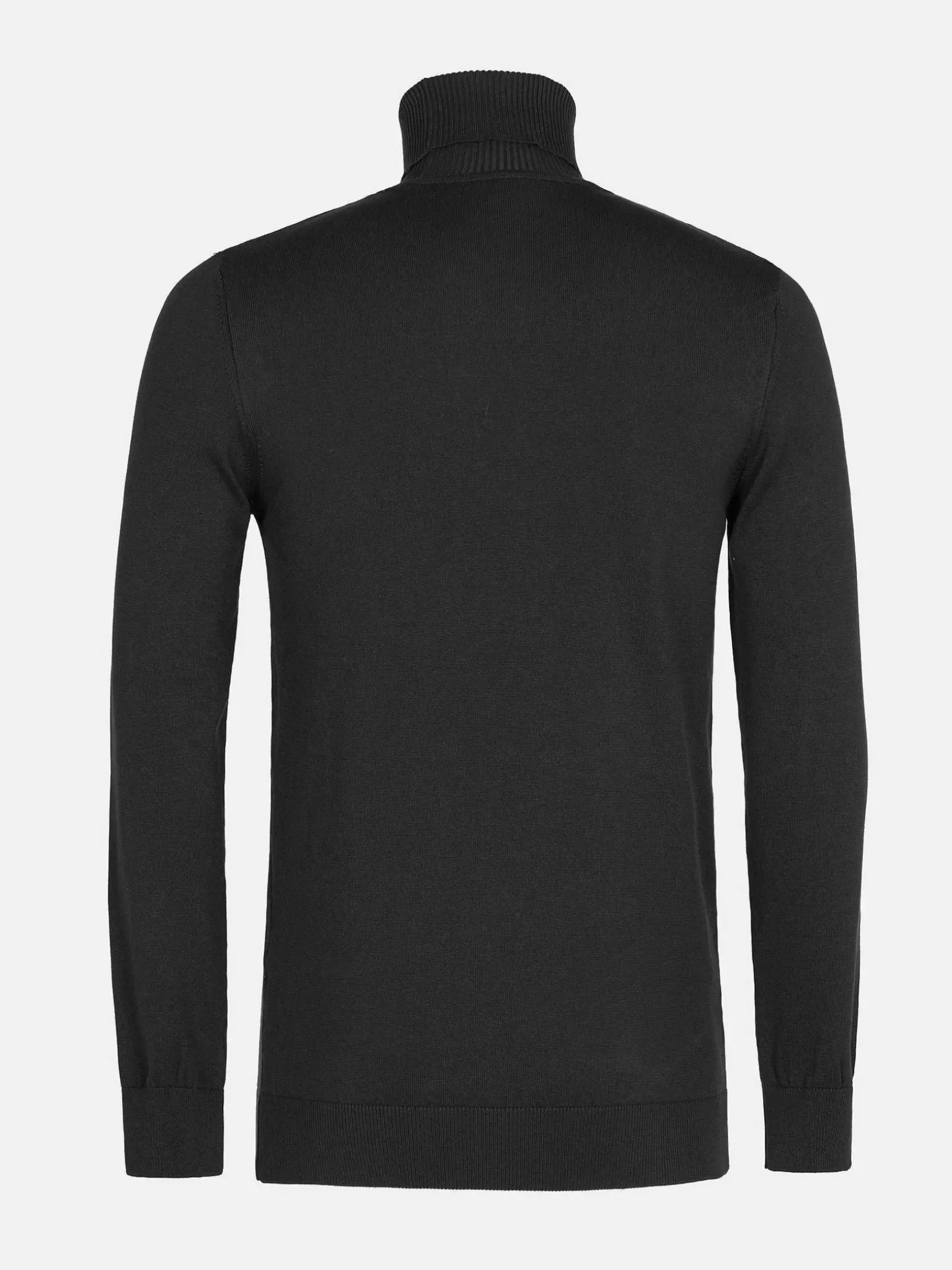 Zwarte Trui Met Met Hoge Kraagelastische Manchetten Voor Een Perfecte Pasvorm.