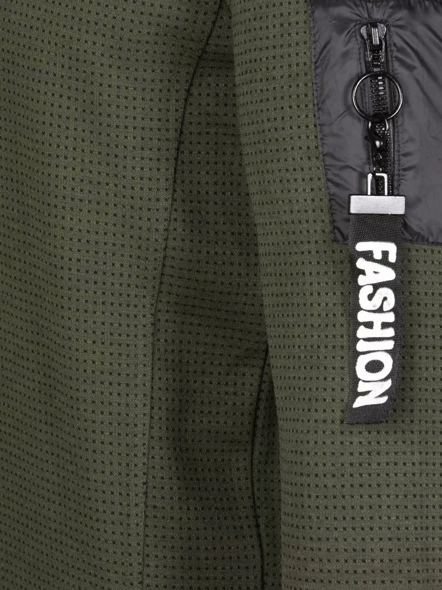 Khaki Kleurige Trui Met Stippenpatroon. Deze Trui Is Afgewerkt Met Een Ritssluiting Op De Linkerarm En Stretch Aan De Onderkant Voor Een Perfecte Pasvorm.