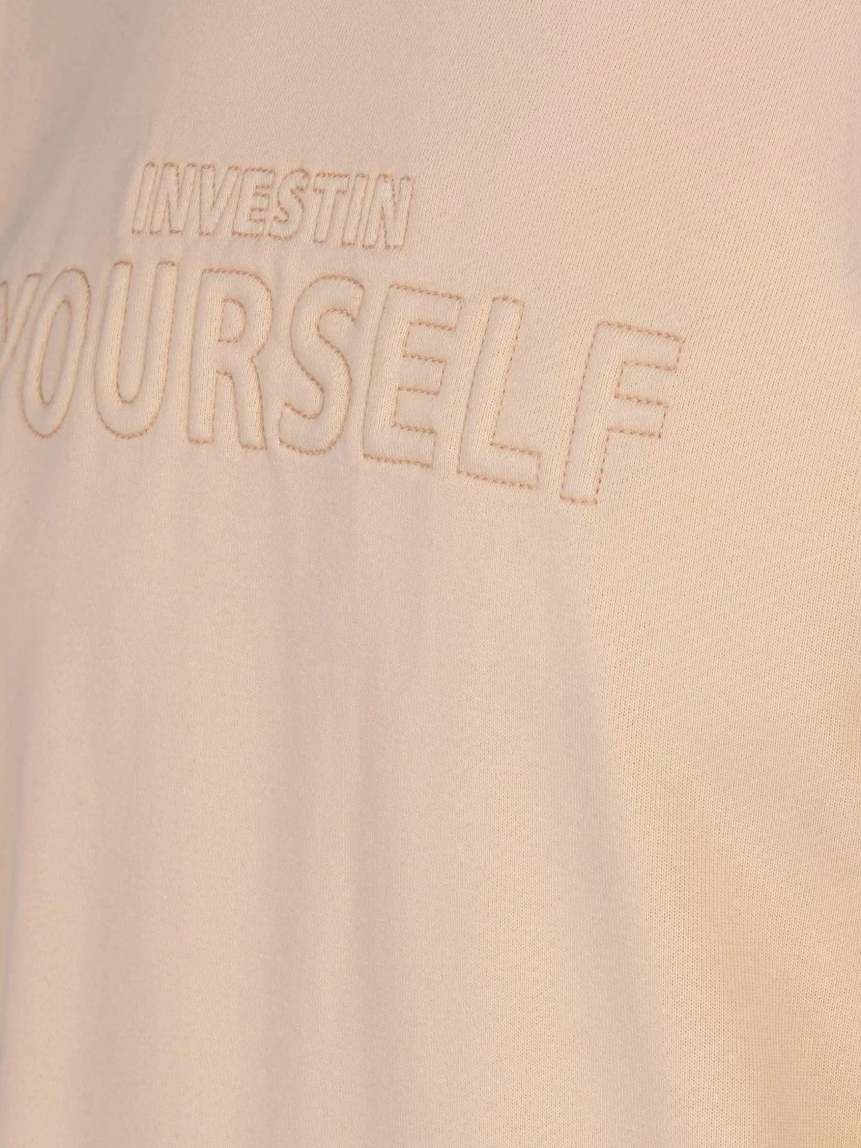 Beige Trui Met Ronde Hals. De Sweater Heeft Een Perfecte Pasvorm En Op Borsthoogte Een Tekst Print.