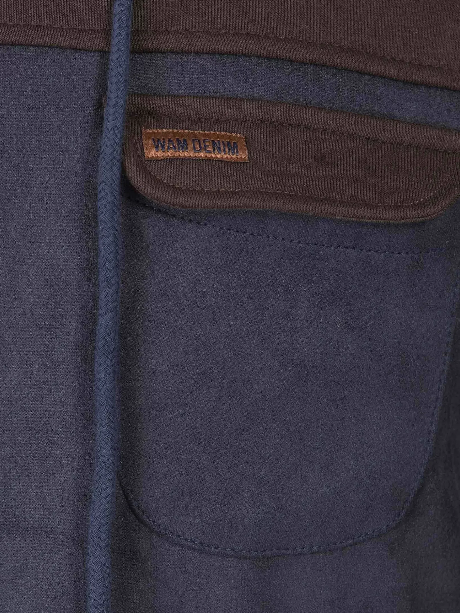 Bruine Hoodie Met Op De Linkerborst Een Zak Met Wam Denim Label.