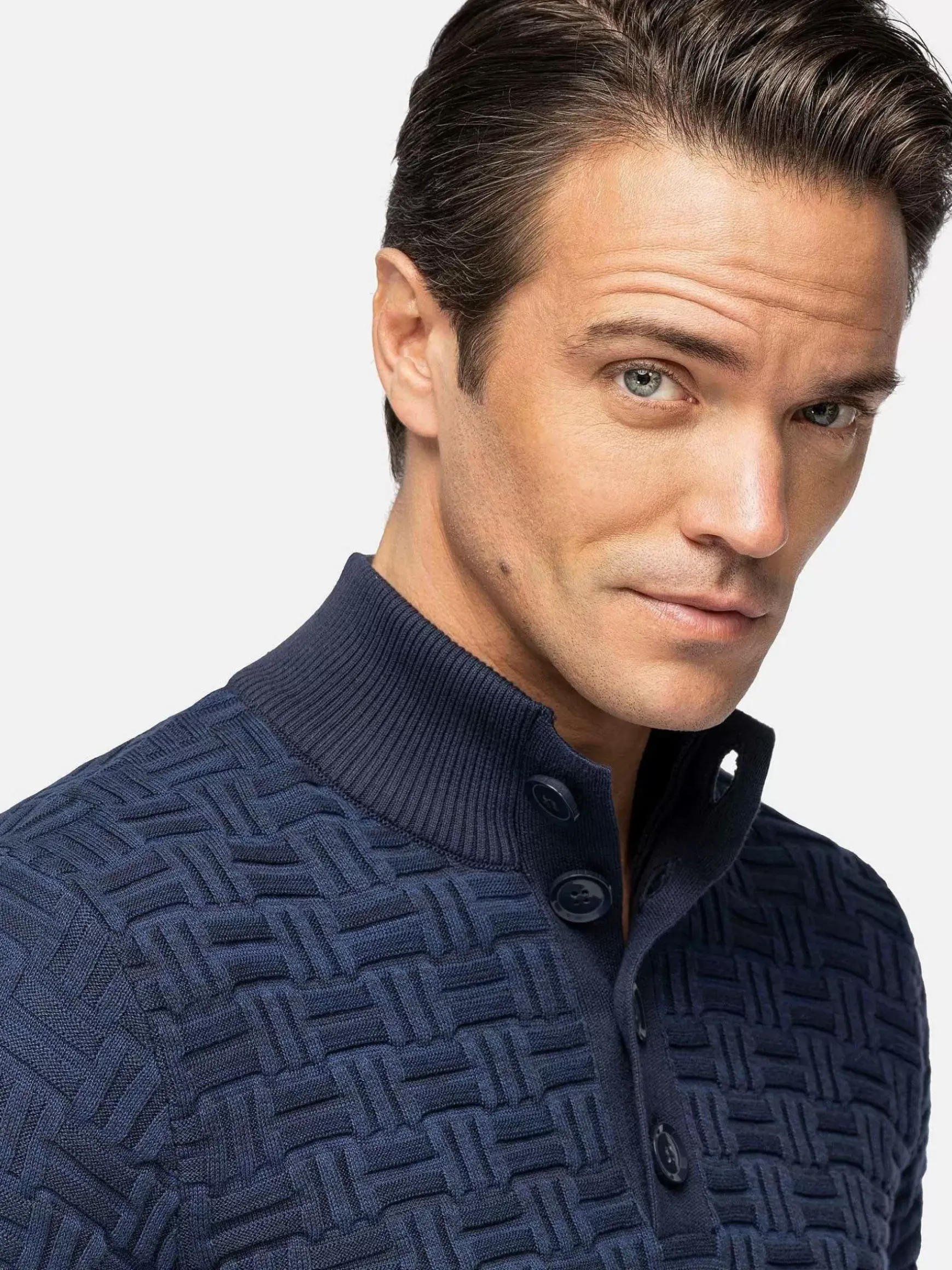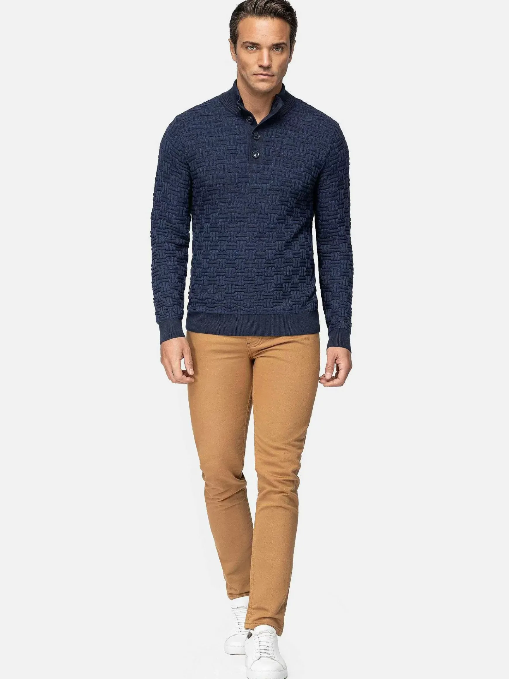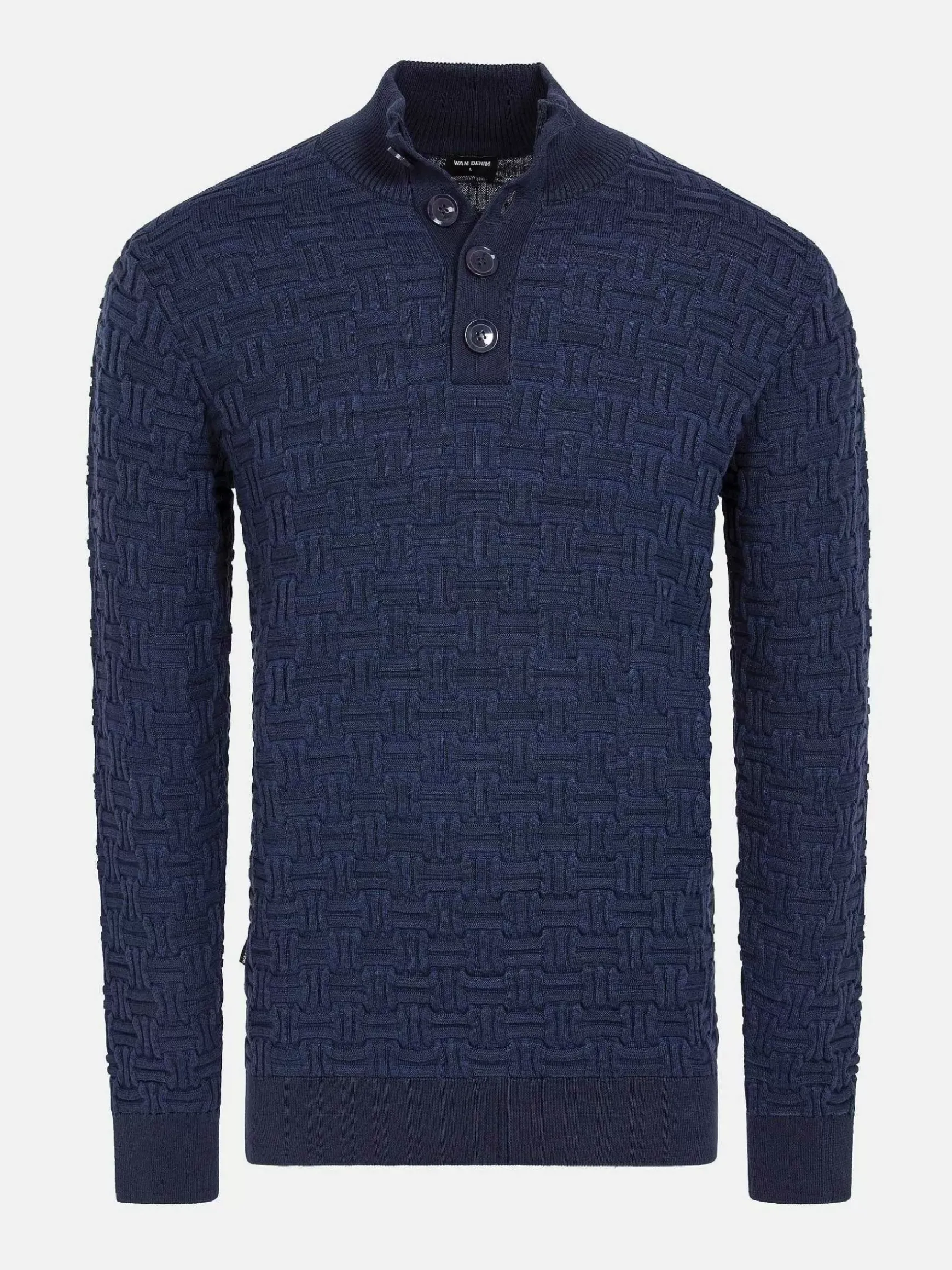 Prachtige Trui In Donkerblauw. Deze Trui Van 100% Katoen Biedt Comfort En Heeft Een Robuuste Uitstraling. Dit Model Heeft Een Opstaande Kraag Met Halve Knoopsluiting. Mooi Te Combineren Met Een Jeans Voor Een Vlotte Look.