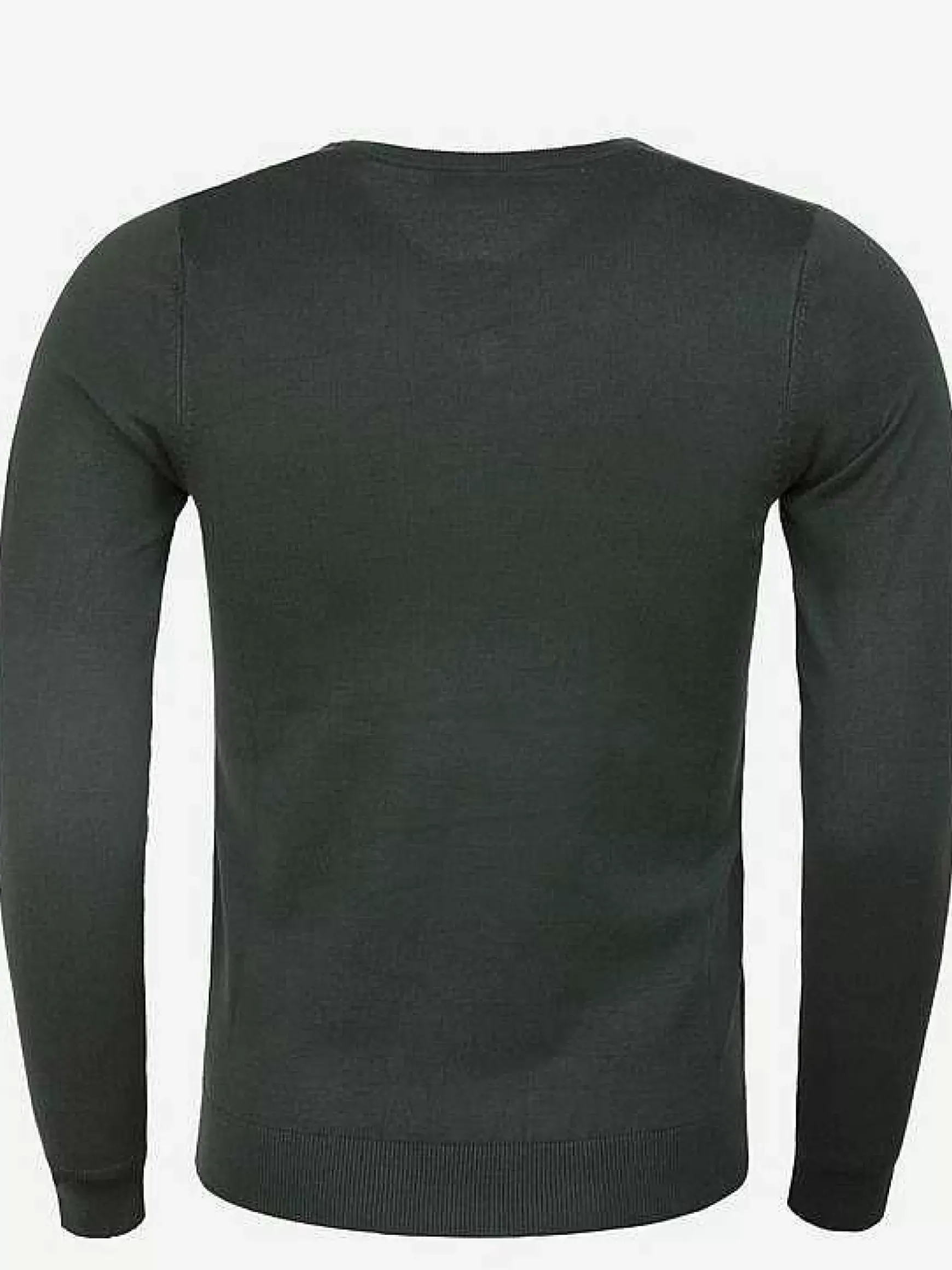 Donkergroene Sweater Met V-Hals. Door De Stof Voelt De Sweater Heel Zacht Aan En Door De Stretch In De Boord Aan De Onderkant Heeft Dit Model Een Comfortabel Pasvorm. De Sweater Kan Zowel Op Een Pantalon Als Op Een Jeans Gedragen Worden.