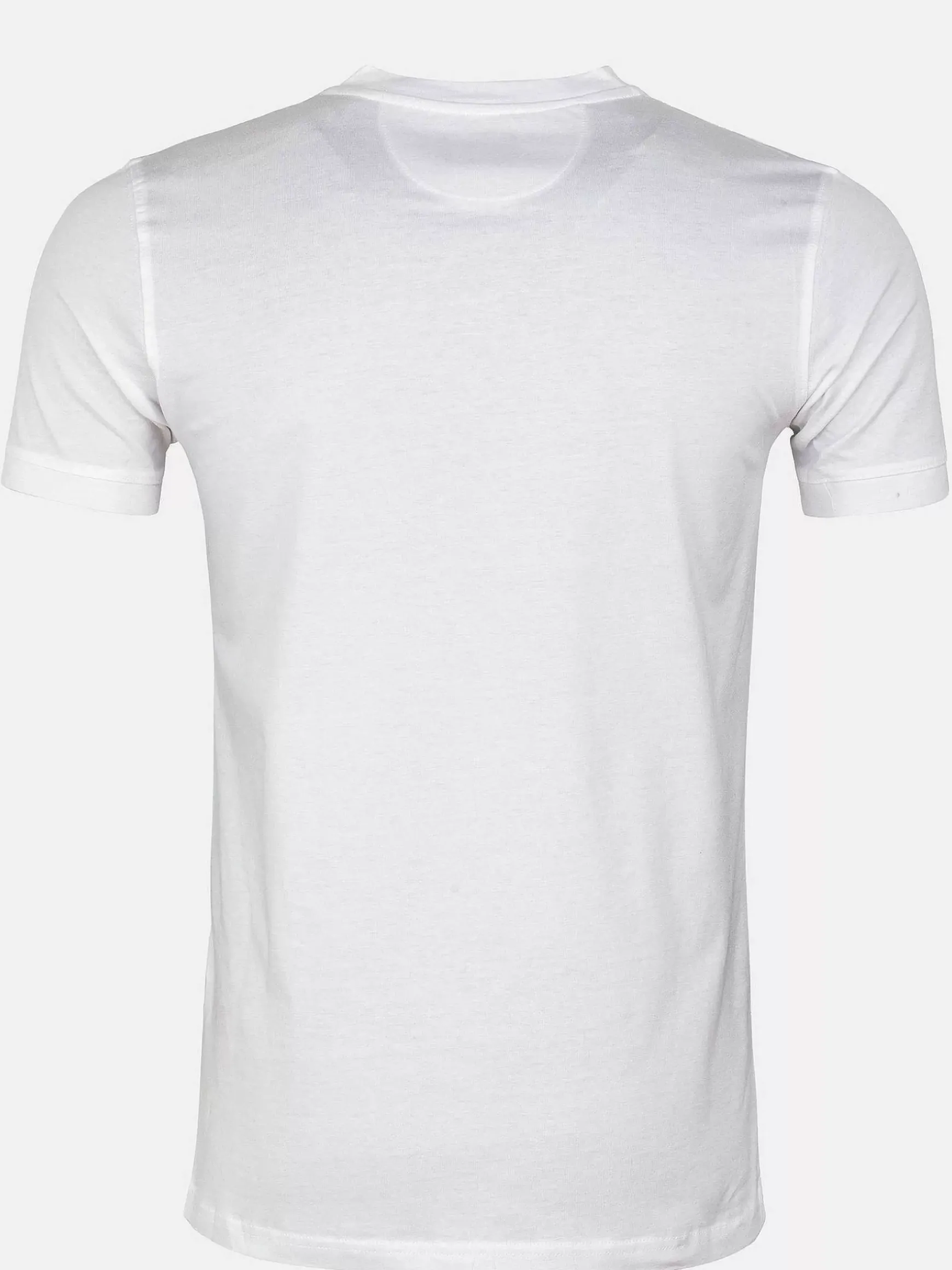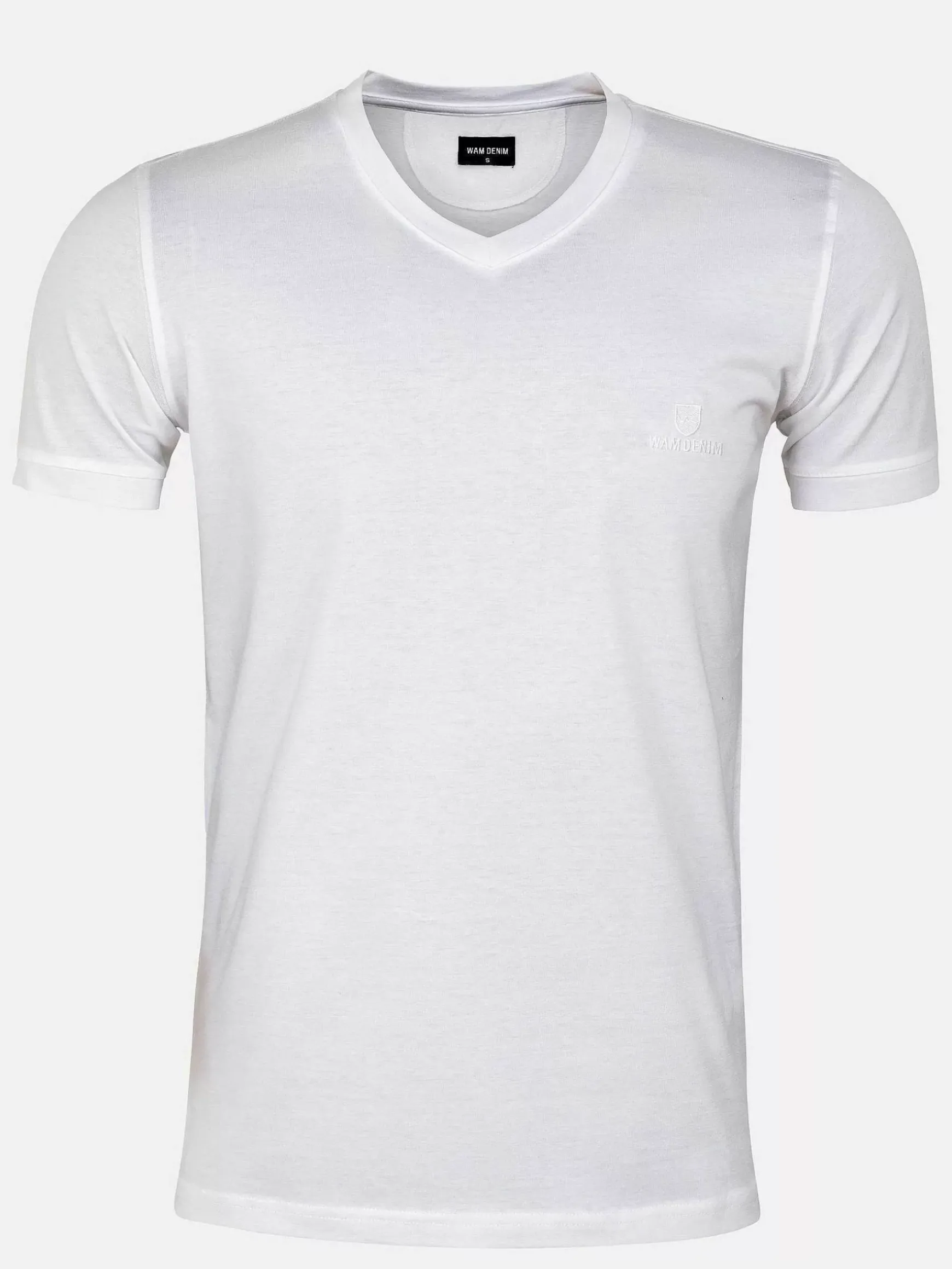 Dit Witte T-Shirt Heeft Een V-Hals En Een Sportieve Uitstraling. Er Zit Een Geborduurd Embleem Van Wam Denim Op De Voorzijde. De Pasvorm Is Een Getailleerd Model Wat Voor Een Fijn Draagcomfort Zorgt.