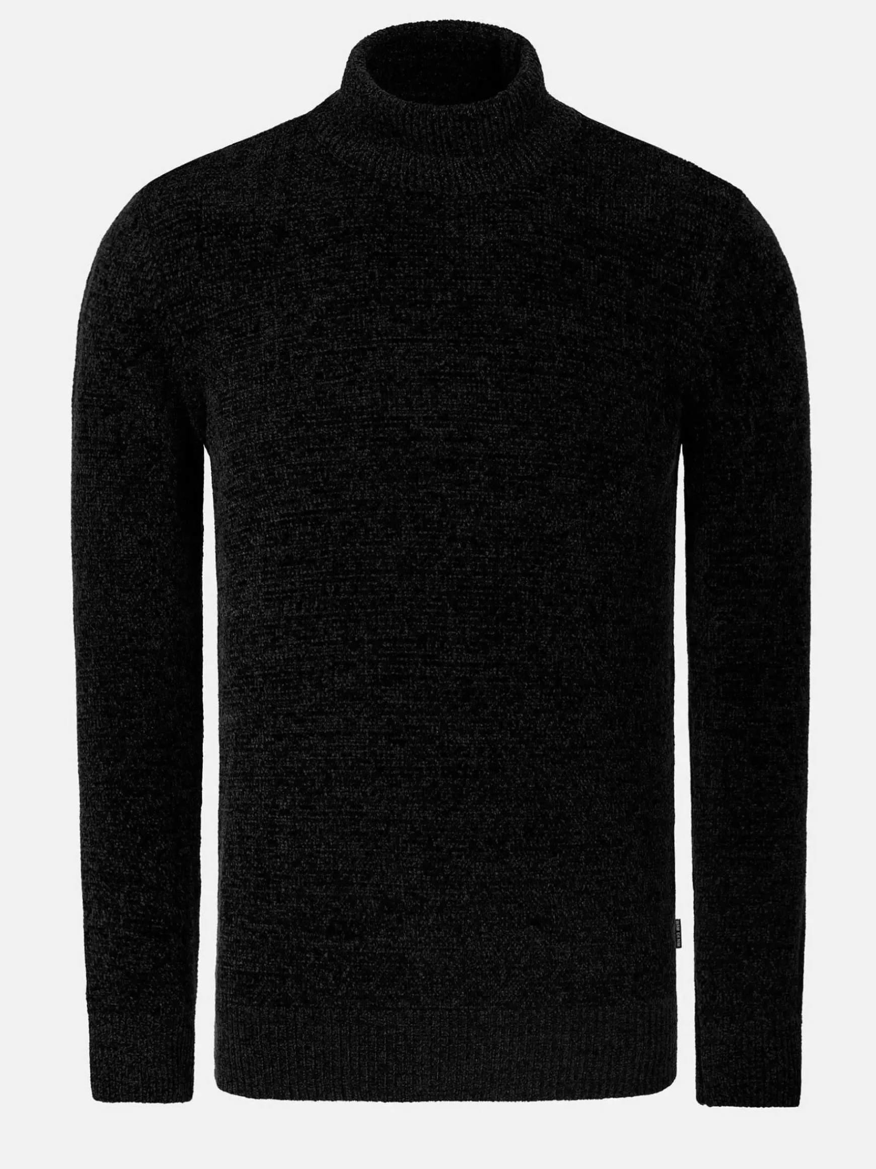 Zwarte Trui Met Hoge Kraag En Ronde Halslijn. Door De Stretch Die In De Stof Is Verwerkt Heeft Dit Model Een Heel Comfortabele Pasvorm. De Trui Komt Zowel Op Een Pantalon Als Op Een Jeans Goed Uit De Verf.