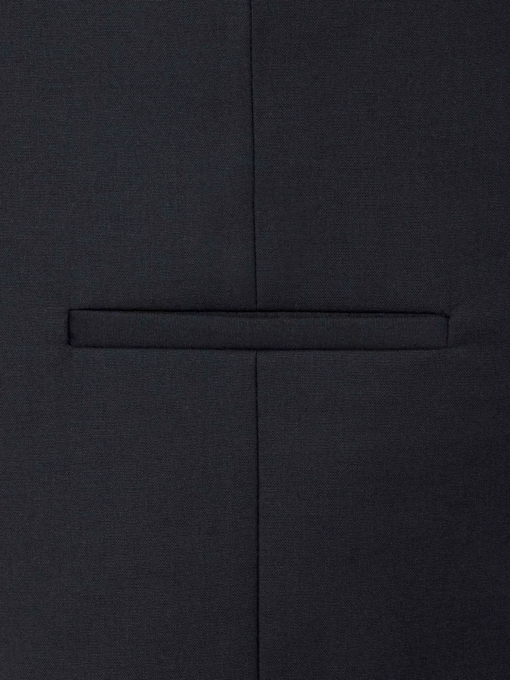 Vittorio Navy Vesten. De Jas Heeft Een Slanke Pasvorm, Een Rekbare Stof Voor Comfort, Twee Kleine Horlogezakken En Een Stijlvolle Sluiting Met Vijf Knopen. Verfraai Je Ensemble Met Tijdloze Elegantie.