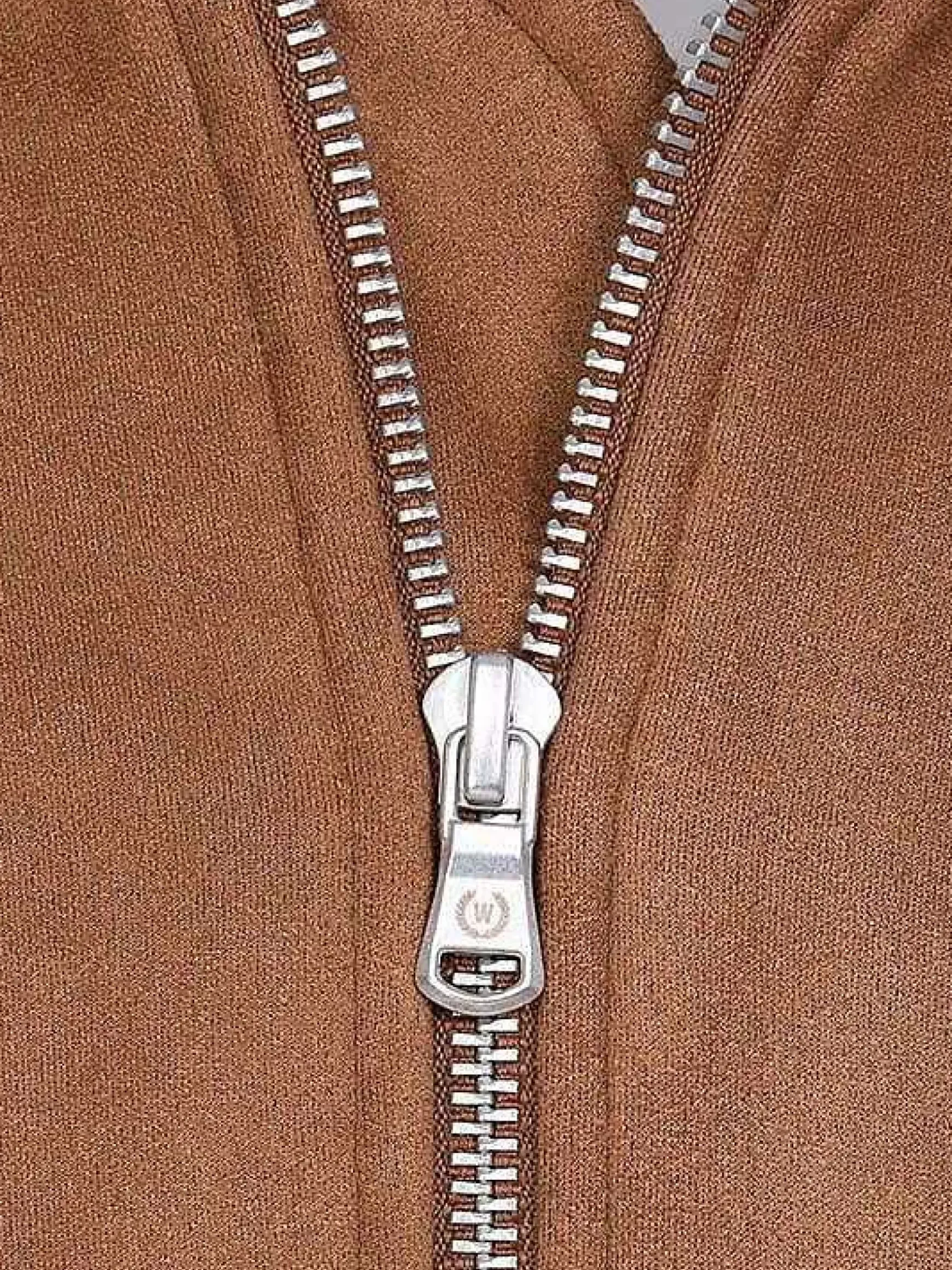 Camel Kleurige Zomerjas Met Ritssluiting. De Jas Heeft Twee Zijzakken Met Ritssluiting En Stretch In De Boord Aan De Onderkant Van De Jas Voor Een Perfecte Pasvorm.